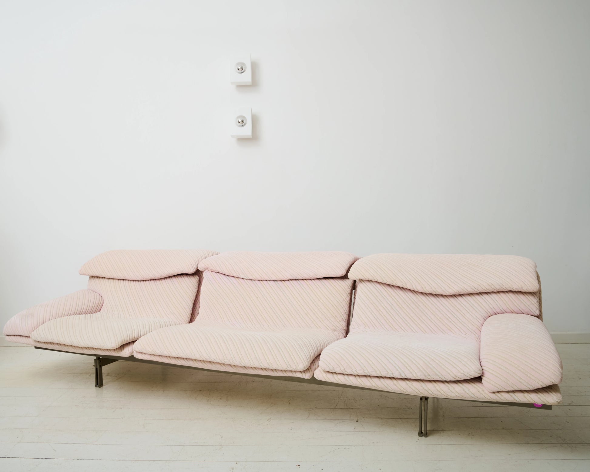 "Wave" lounge chair by Giovanni Offredi for Saporiti, 1970s. Signed. Steel frame and original beige corduroy upholstered seat. Good condition despite some signs of wear and repairs to the original fabric (see photos).