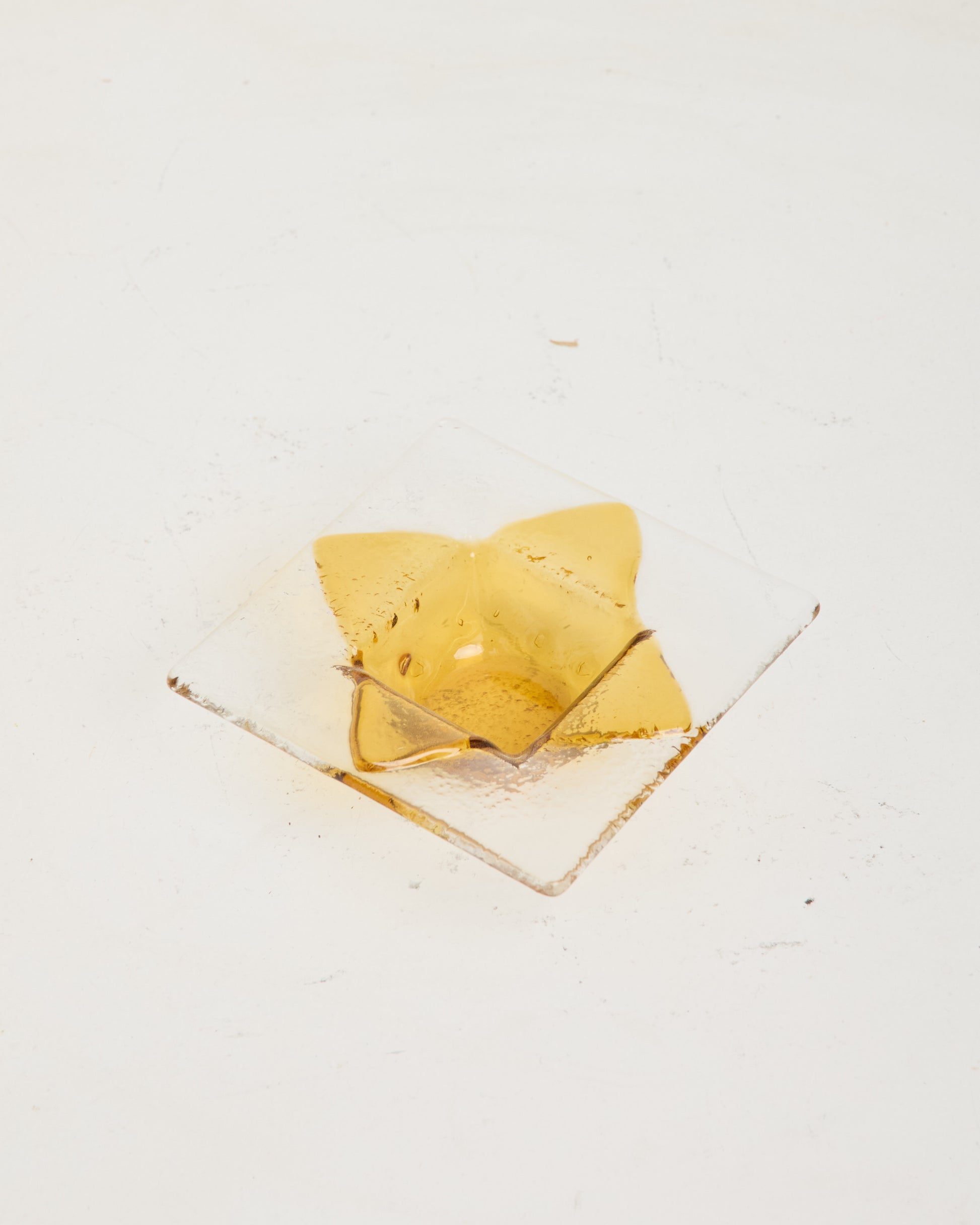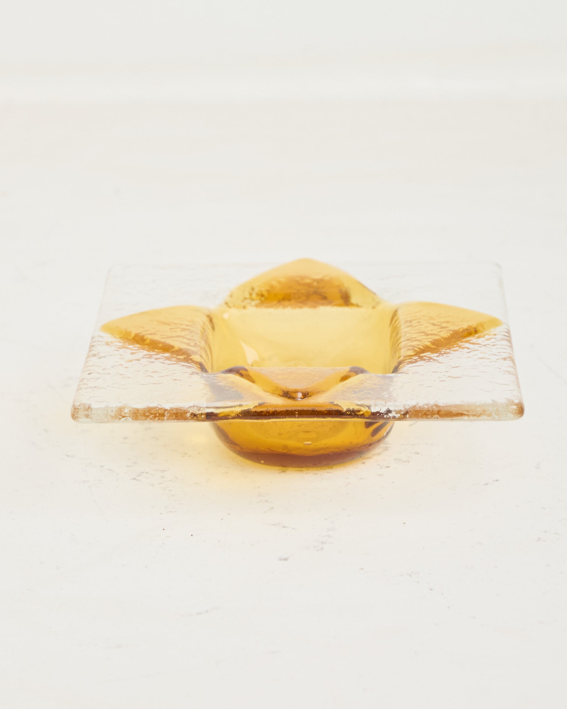 Clear Murano glass ashtray with yellow designs. Very good condition.