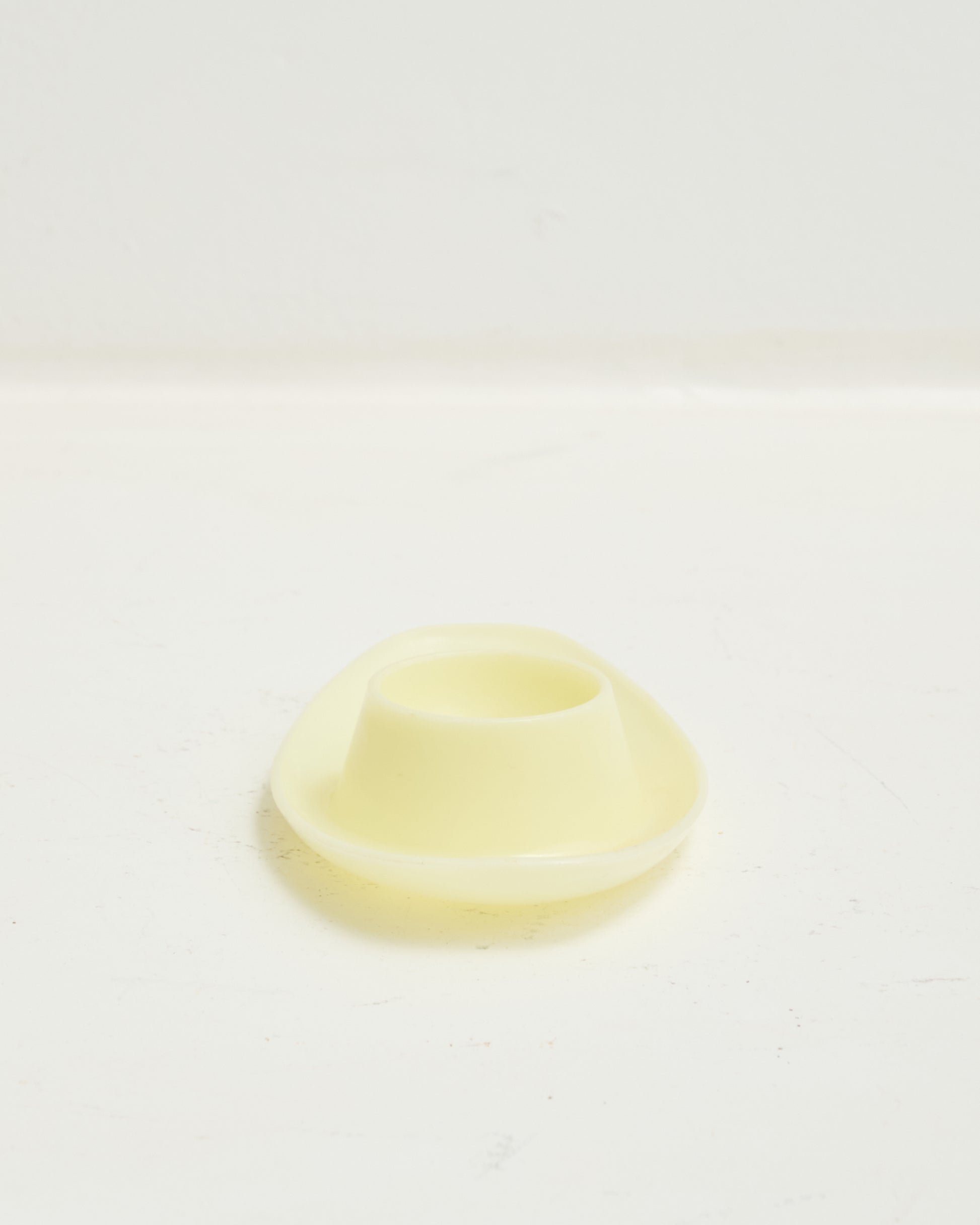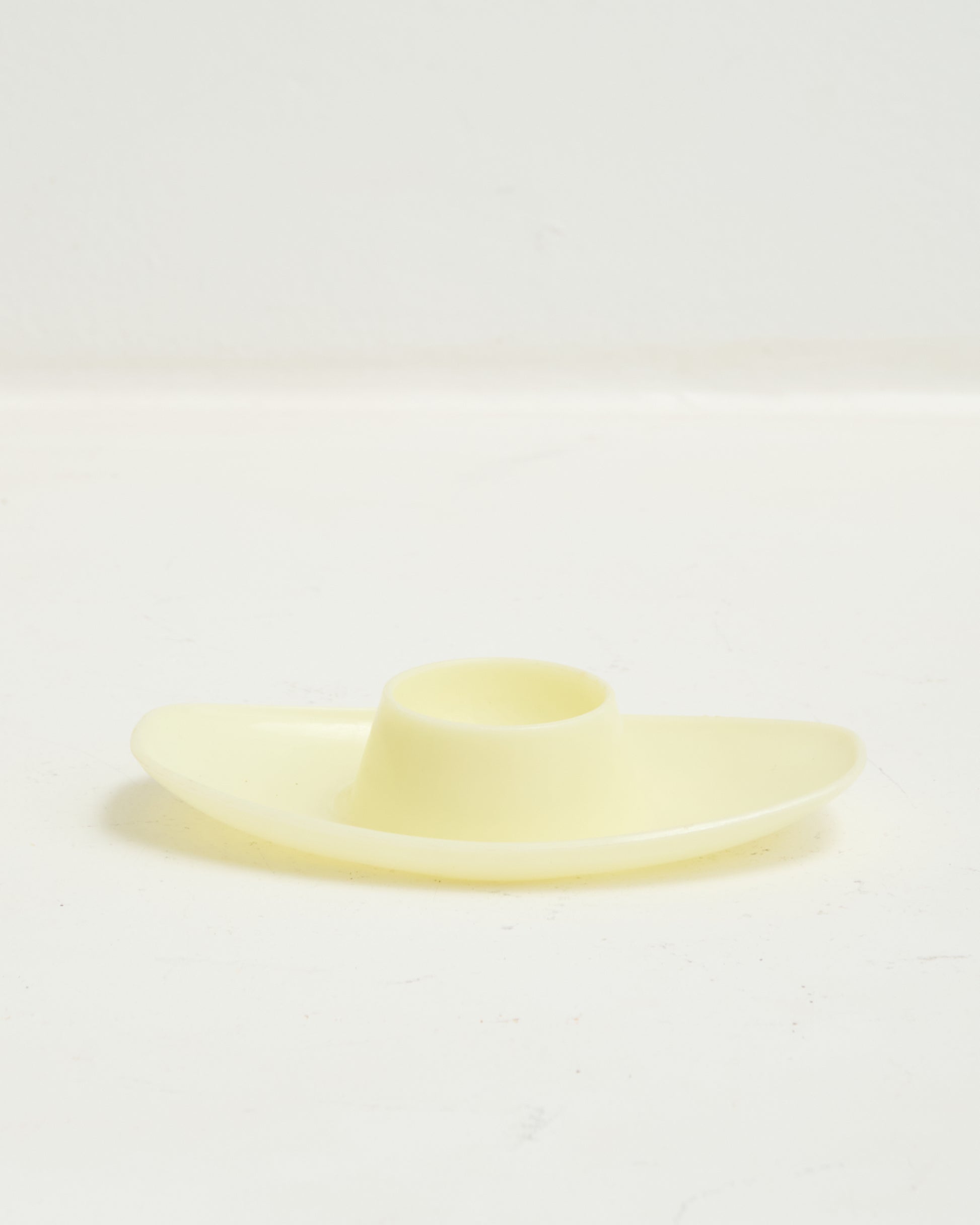 Five oval-shaped yellow plastic egg cups. From the 1970s. Space age. Good condition.