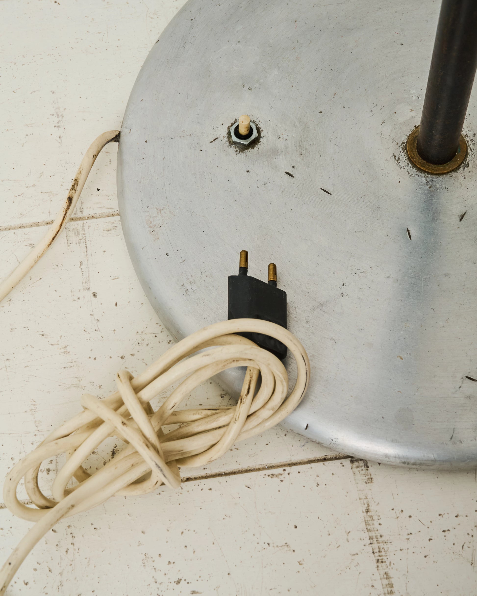 Metal floor lamp by Goffredo Reggiani, featuring four opaline globes. Bulbs included. Very good condition, with some signs of age.