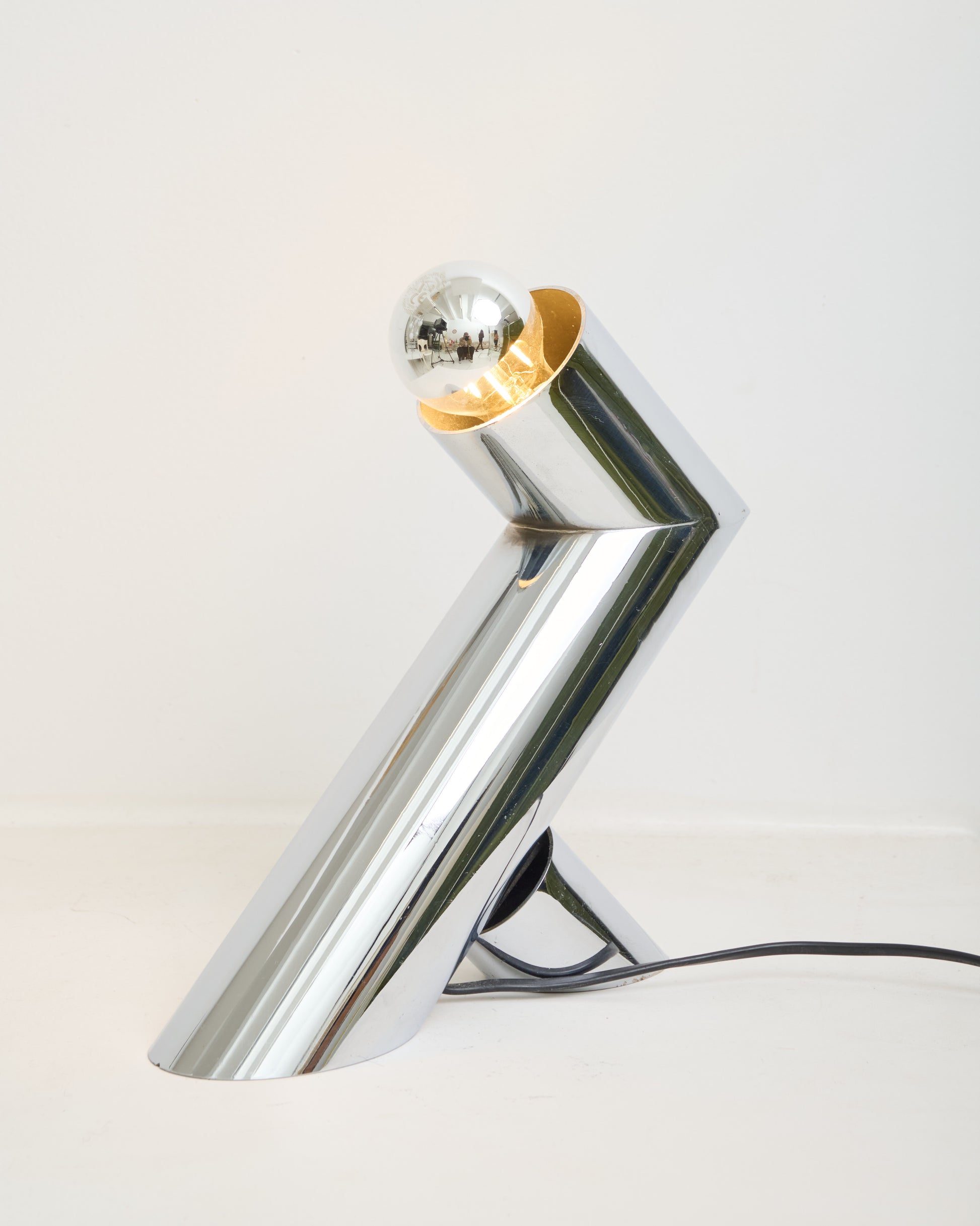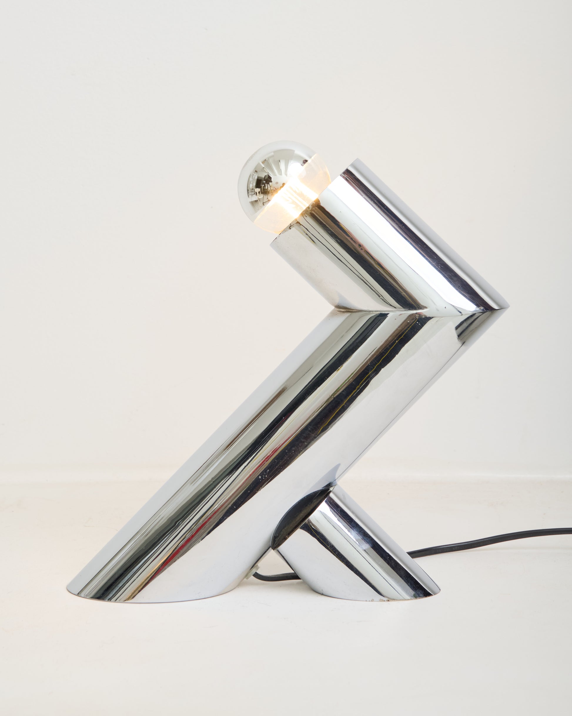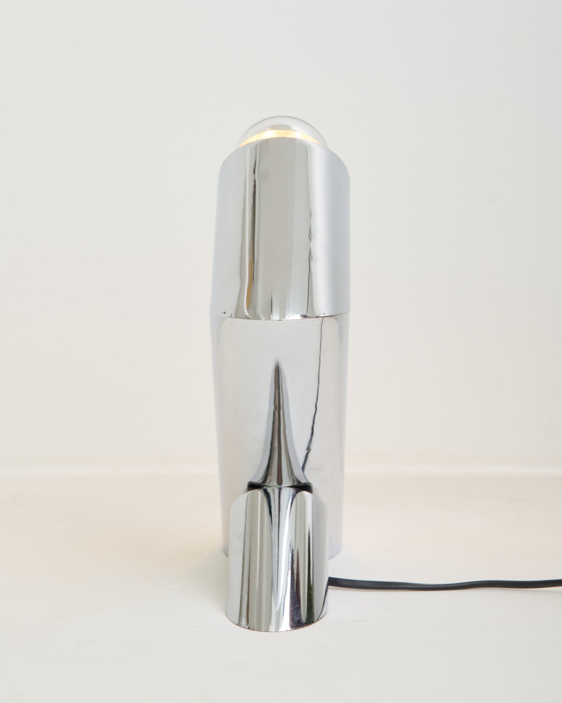Cylindrical lamp in chromed metal, 1970s. Very good condition, a few minor scratches on the metal. Light bulb not included.