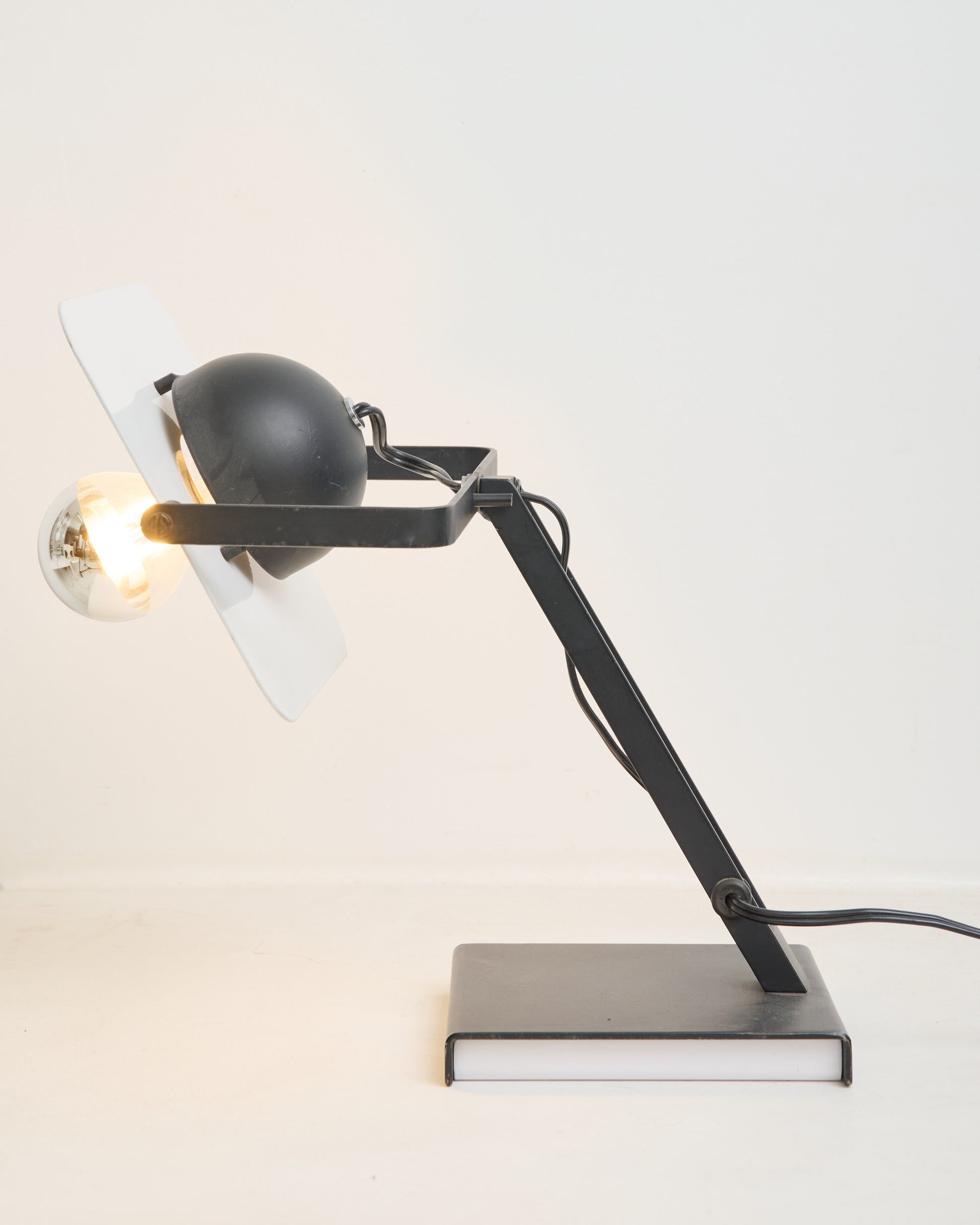 Two-tone table lamp in white and black lacquered metal. Italian production from the 1980s. Very good condition. Light bulb not included.