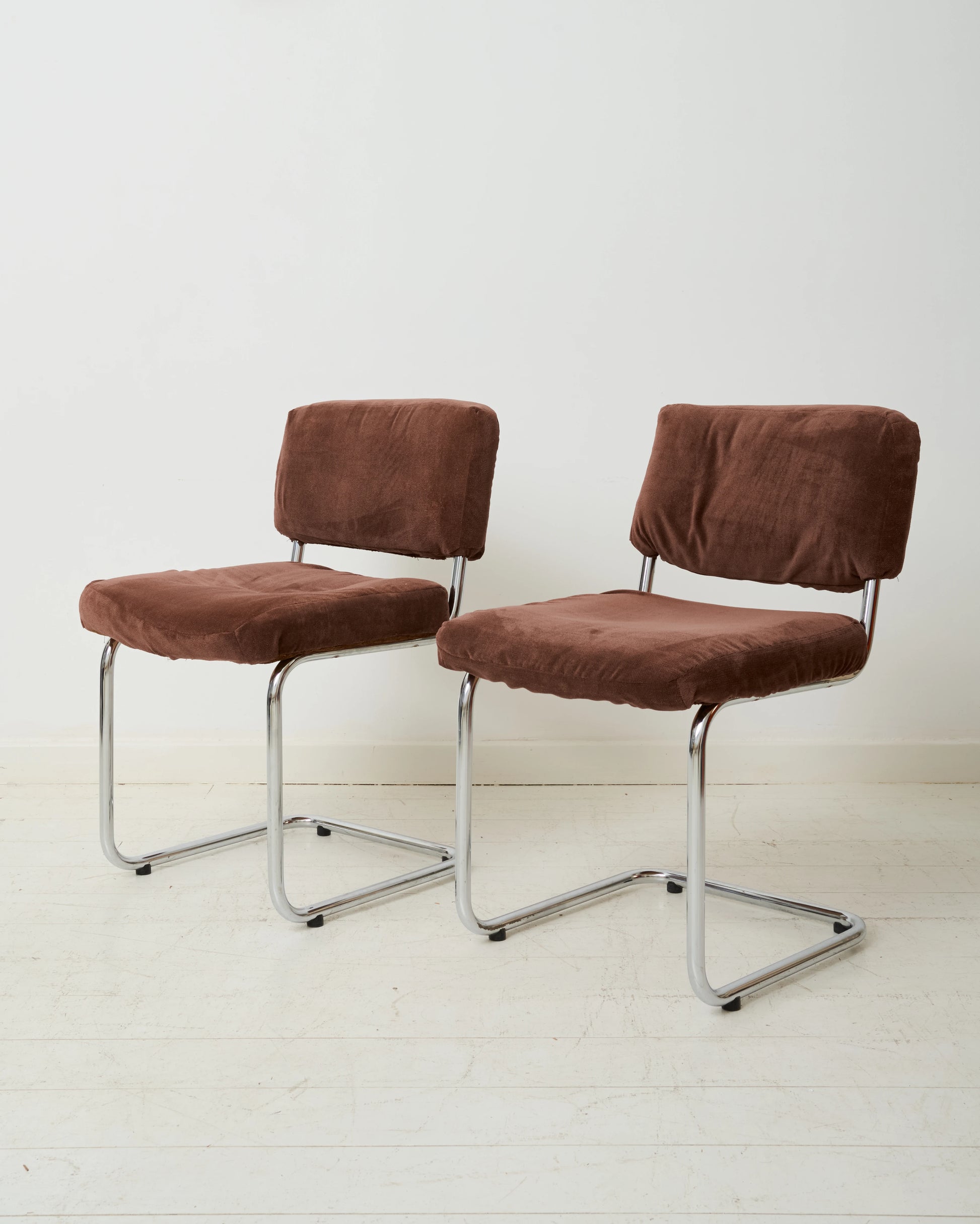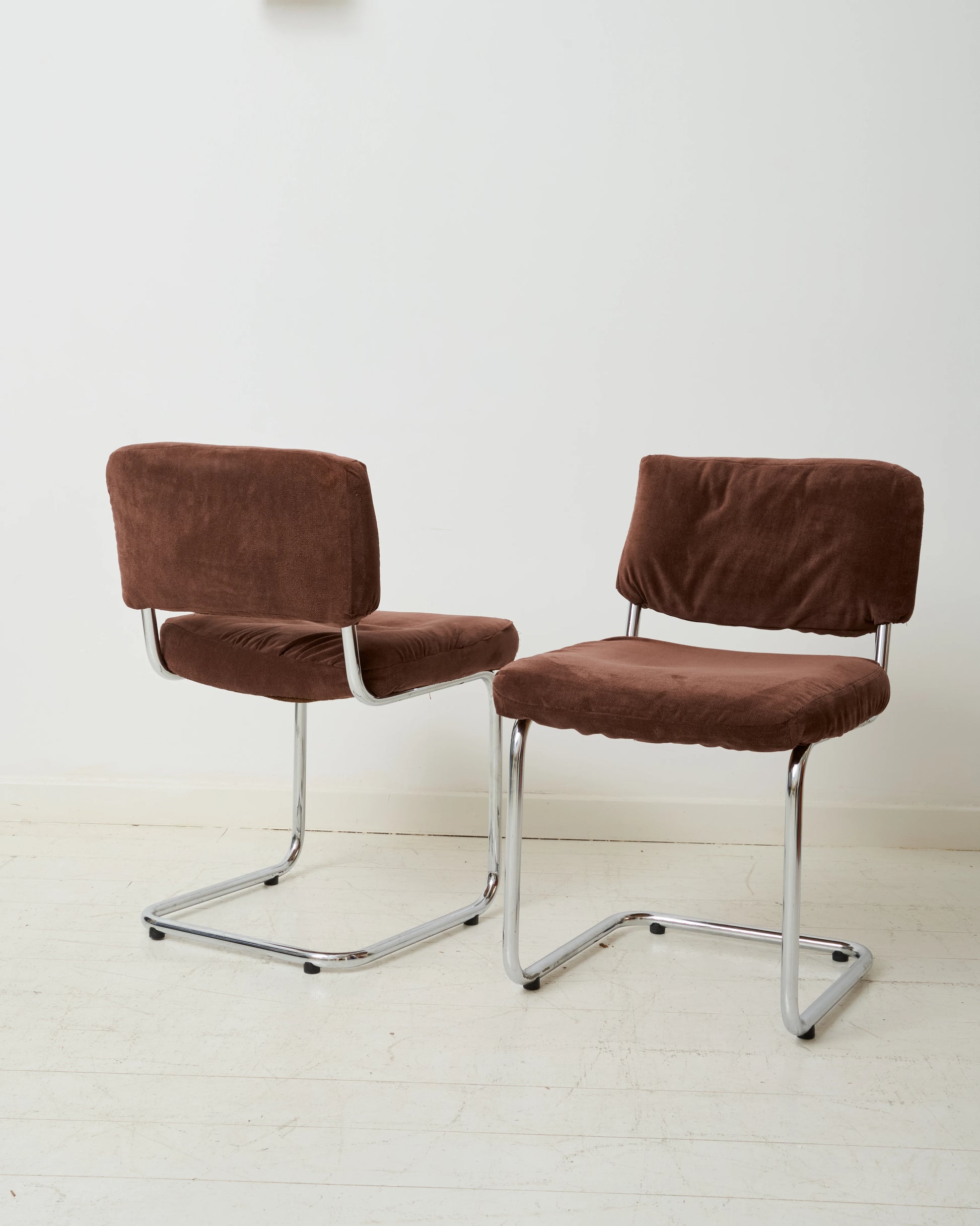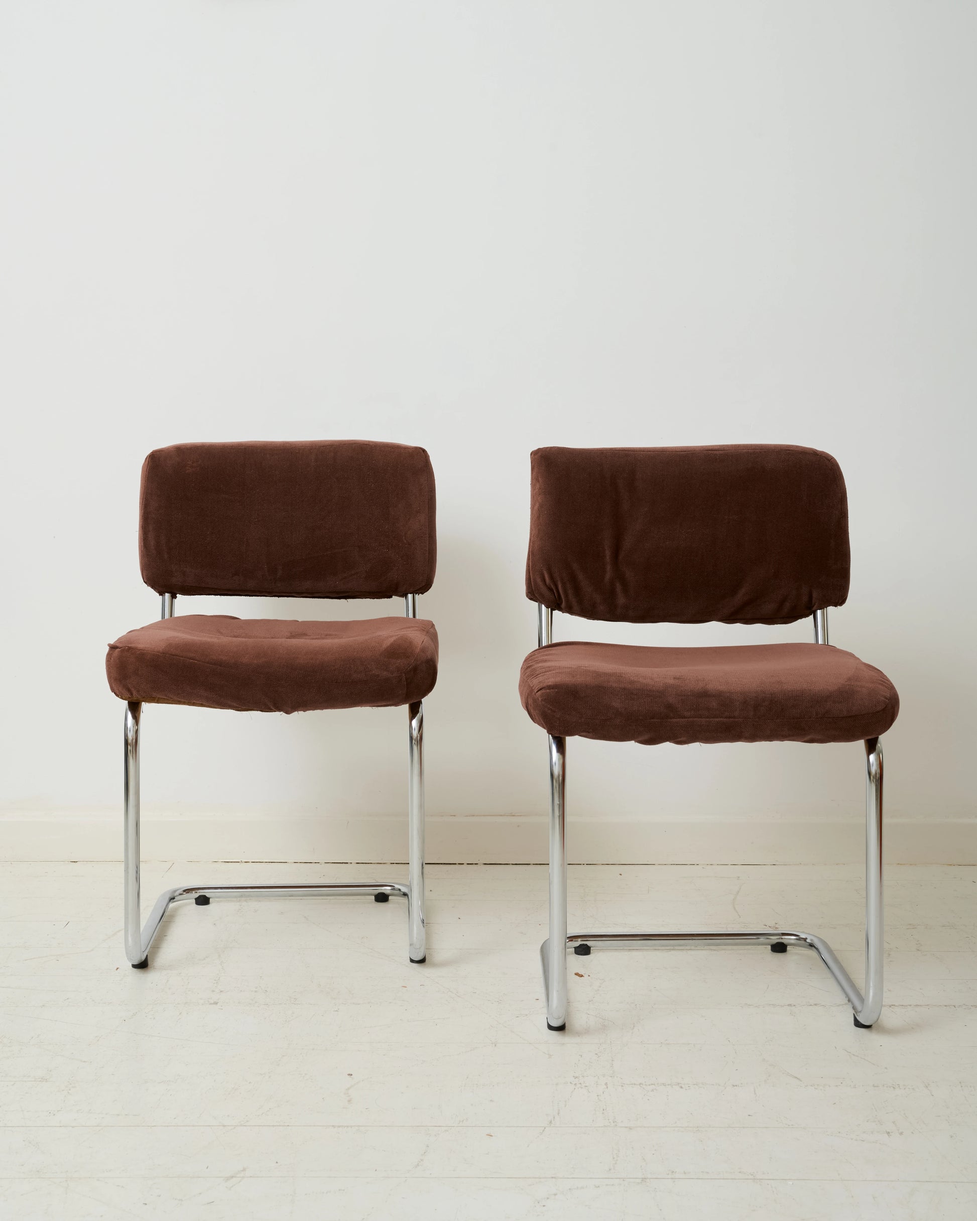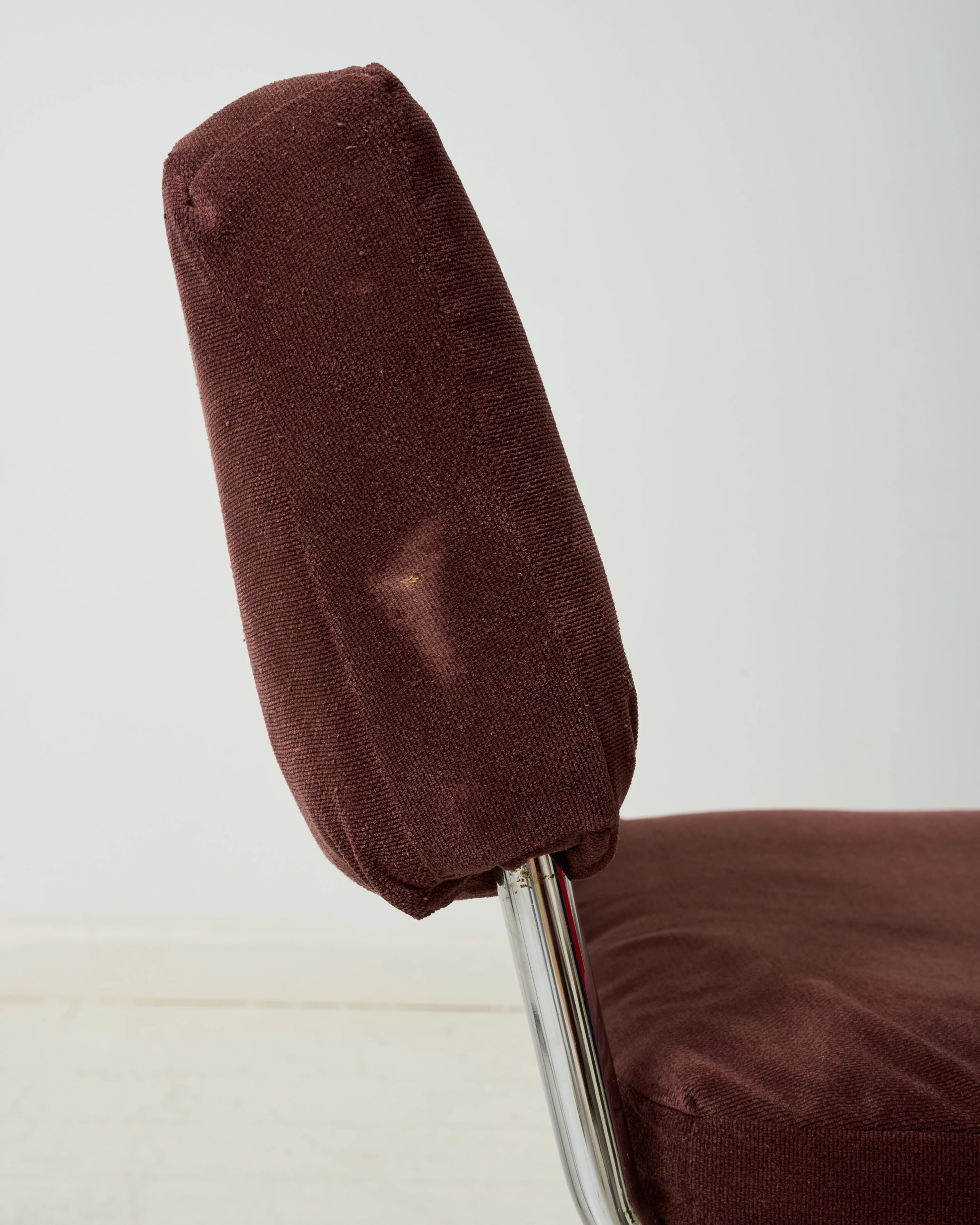 Materials: Chrome-plated metal and brown velvet.