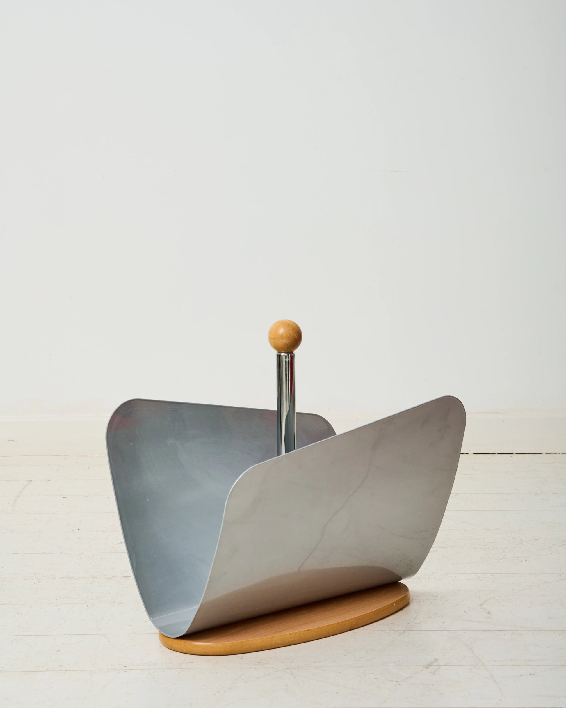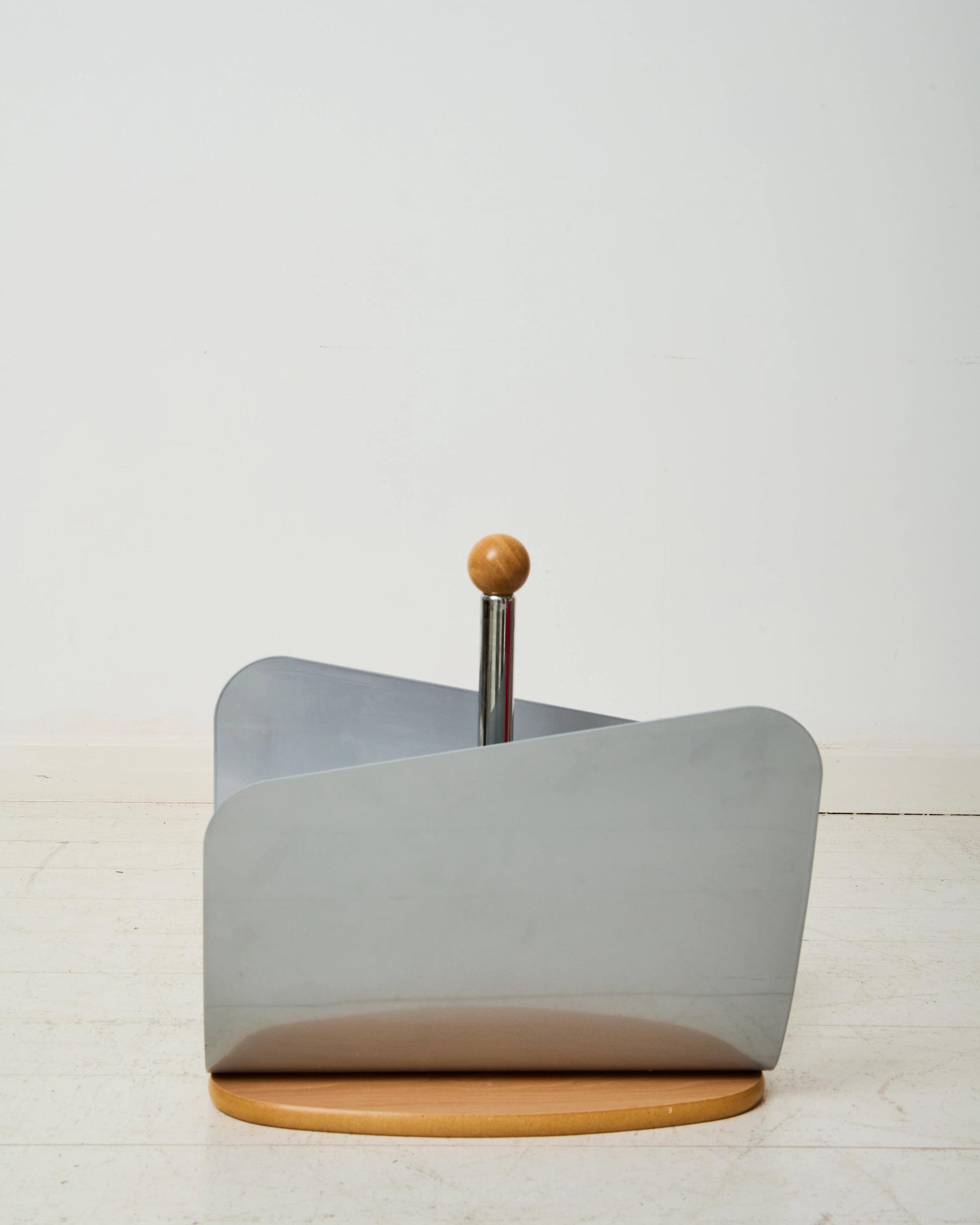 Magazine rack in white metal and checkered glasses