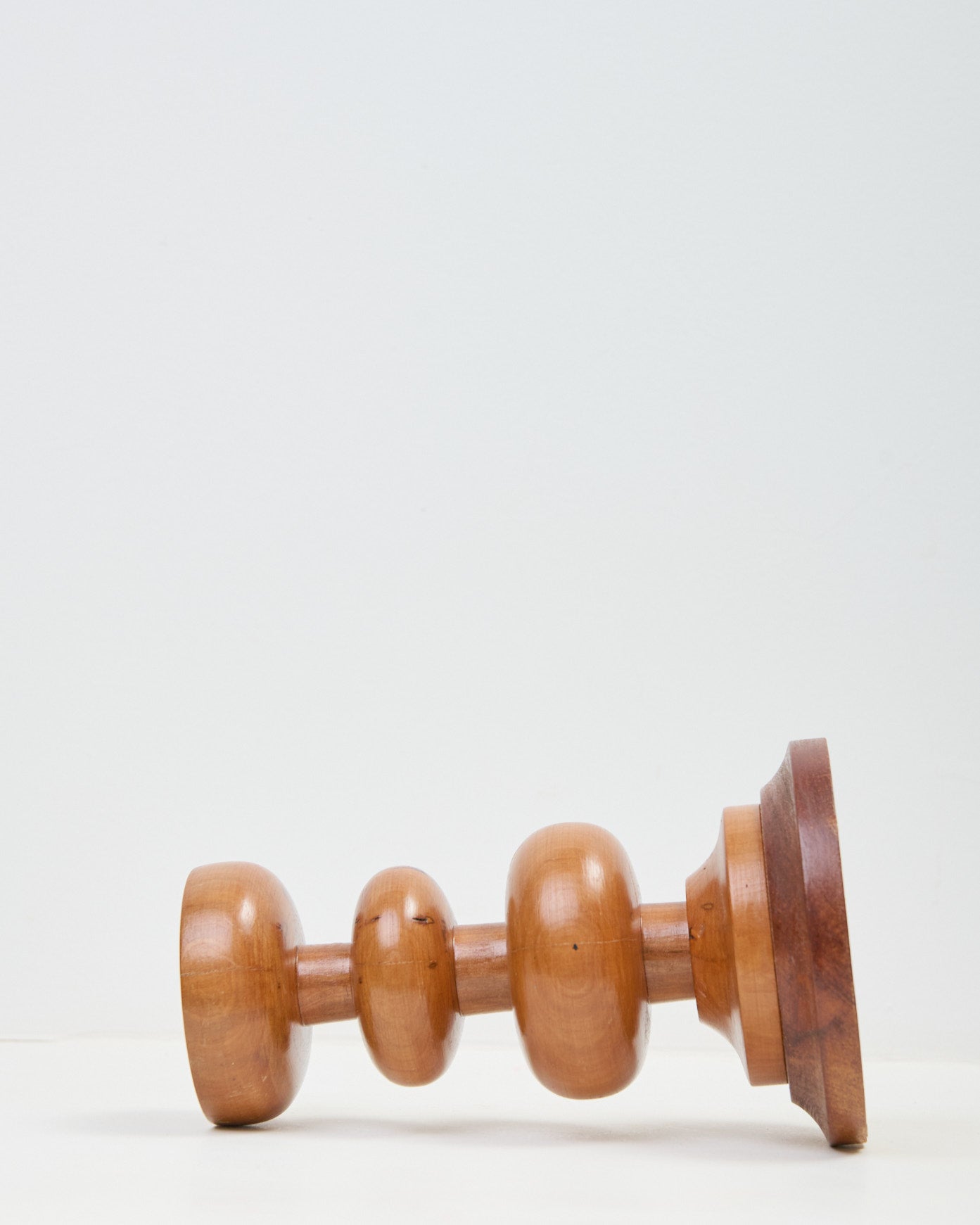 Bougeoir en bois avec socle arrondi et boules décoratives en bois. Pouvant accueillir une petite bougie ou bien une grande. Très bel état.