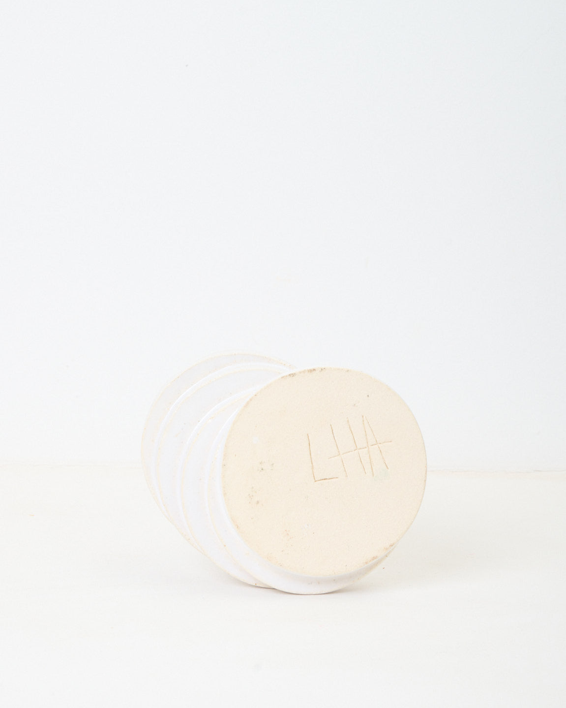 Céramique en grès blanc émaillé, représentant un cendrier, par l’artiste Lou Hubert-Astruc. Six disponibles : 1 violet, 1 bleu nuit, 1 bleu ciel, 1 rouge et 1 gris.