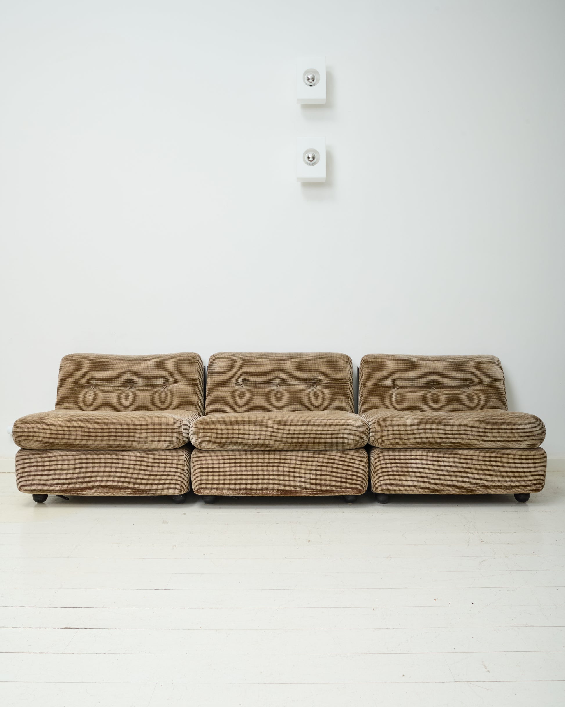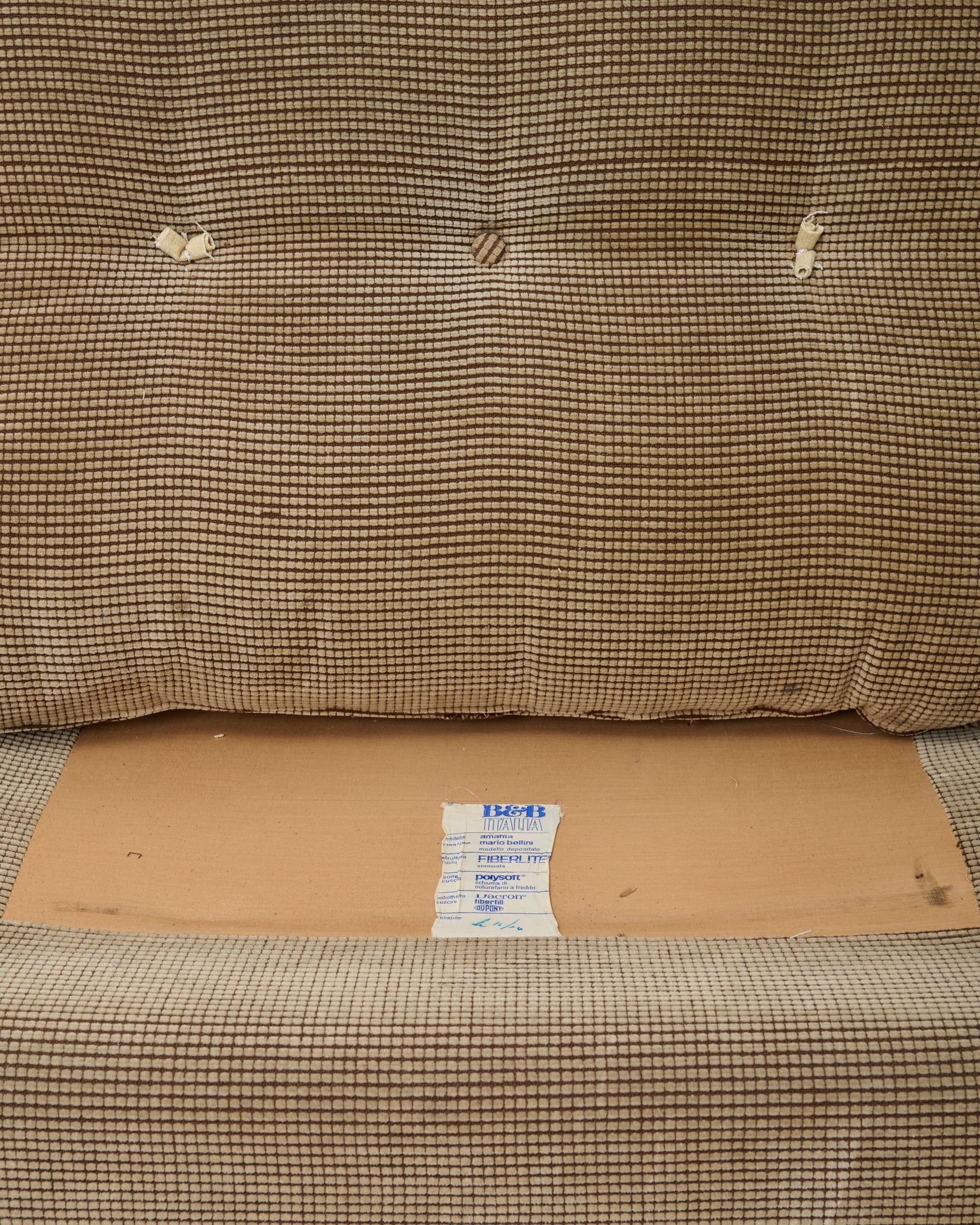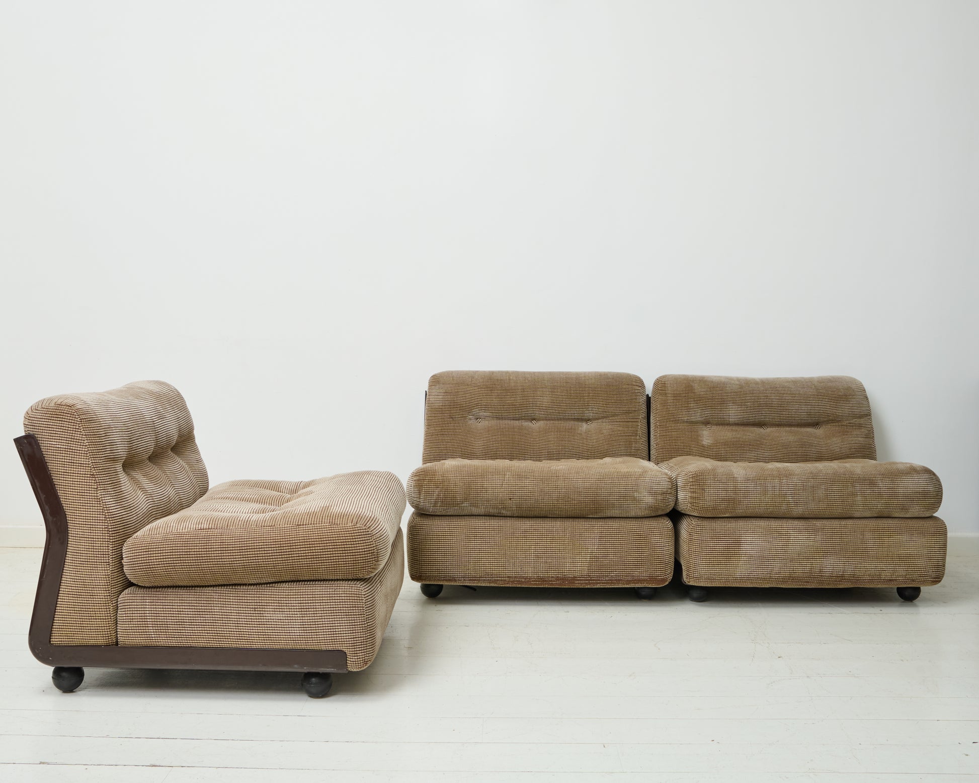 Chauffeuse "Amanta", Mario Bellini, B&B Italia, 1970-1980. Signé sous l'assise. Trois disponibles. Très bel état de la mousse, du tissu, boutons manquants mais seulement sur le dessous des assises. Très bel état de la coque.
