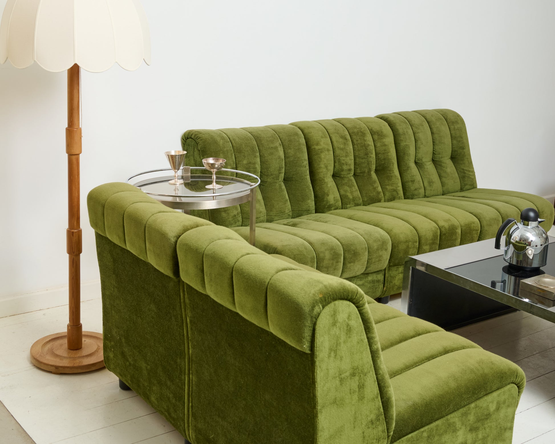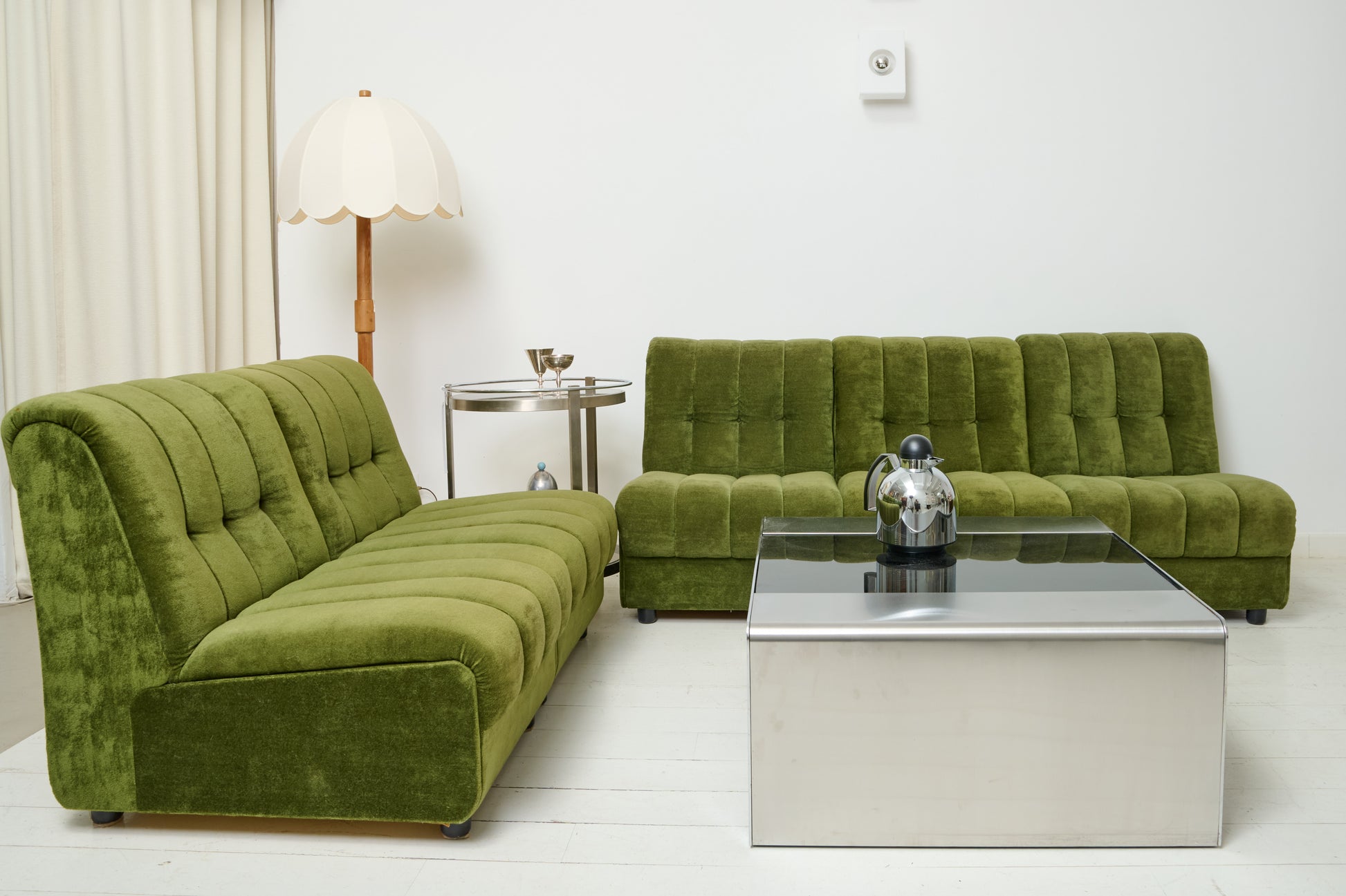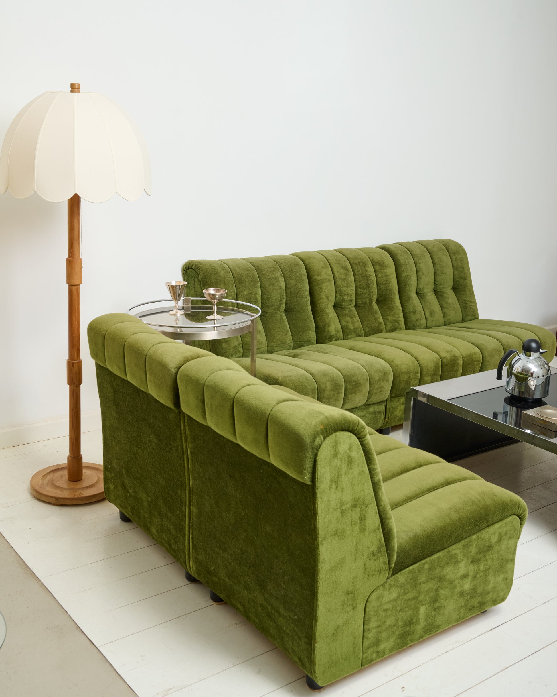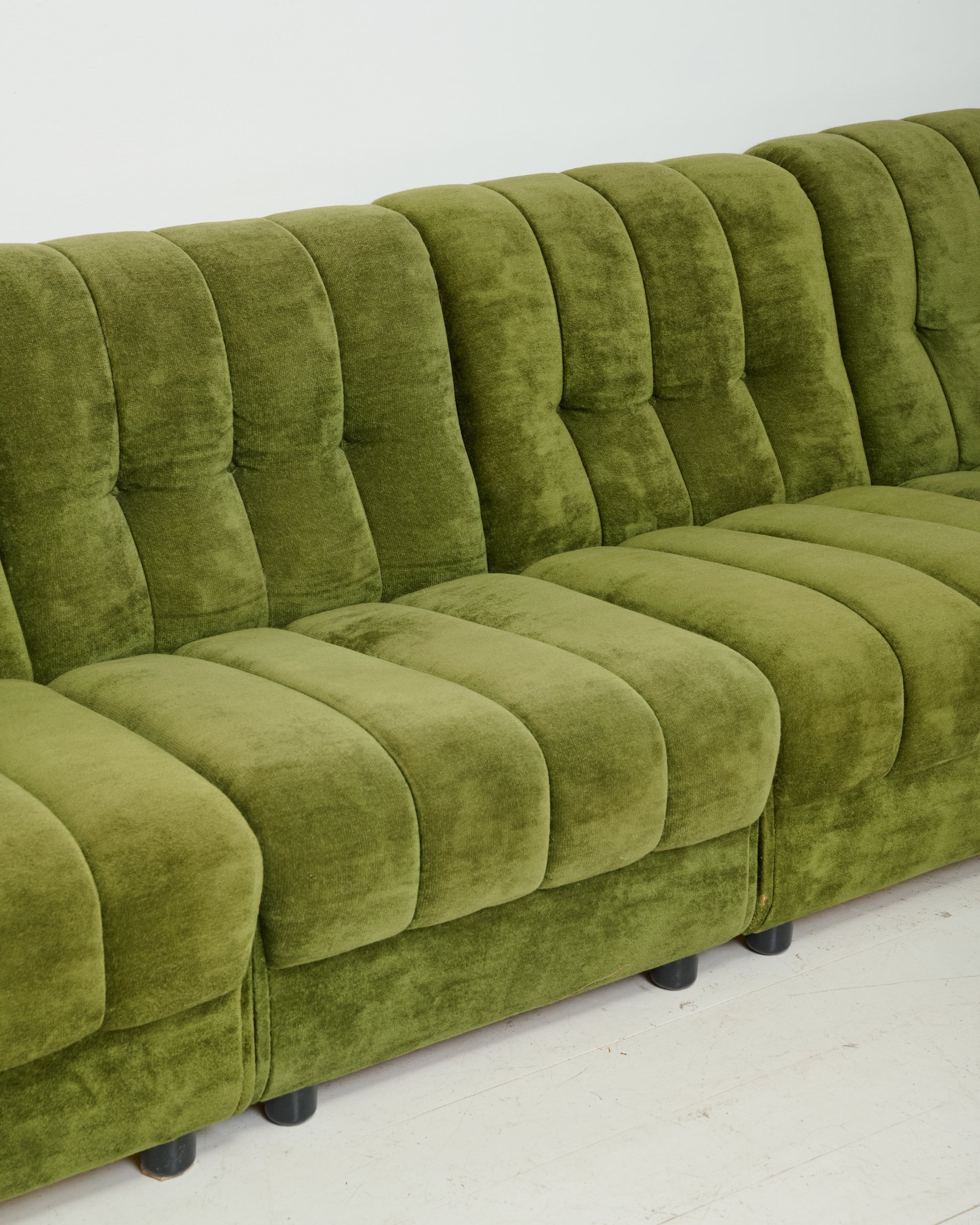 Chauffeuse ou canapé modulable en velours vert, 1970s