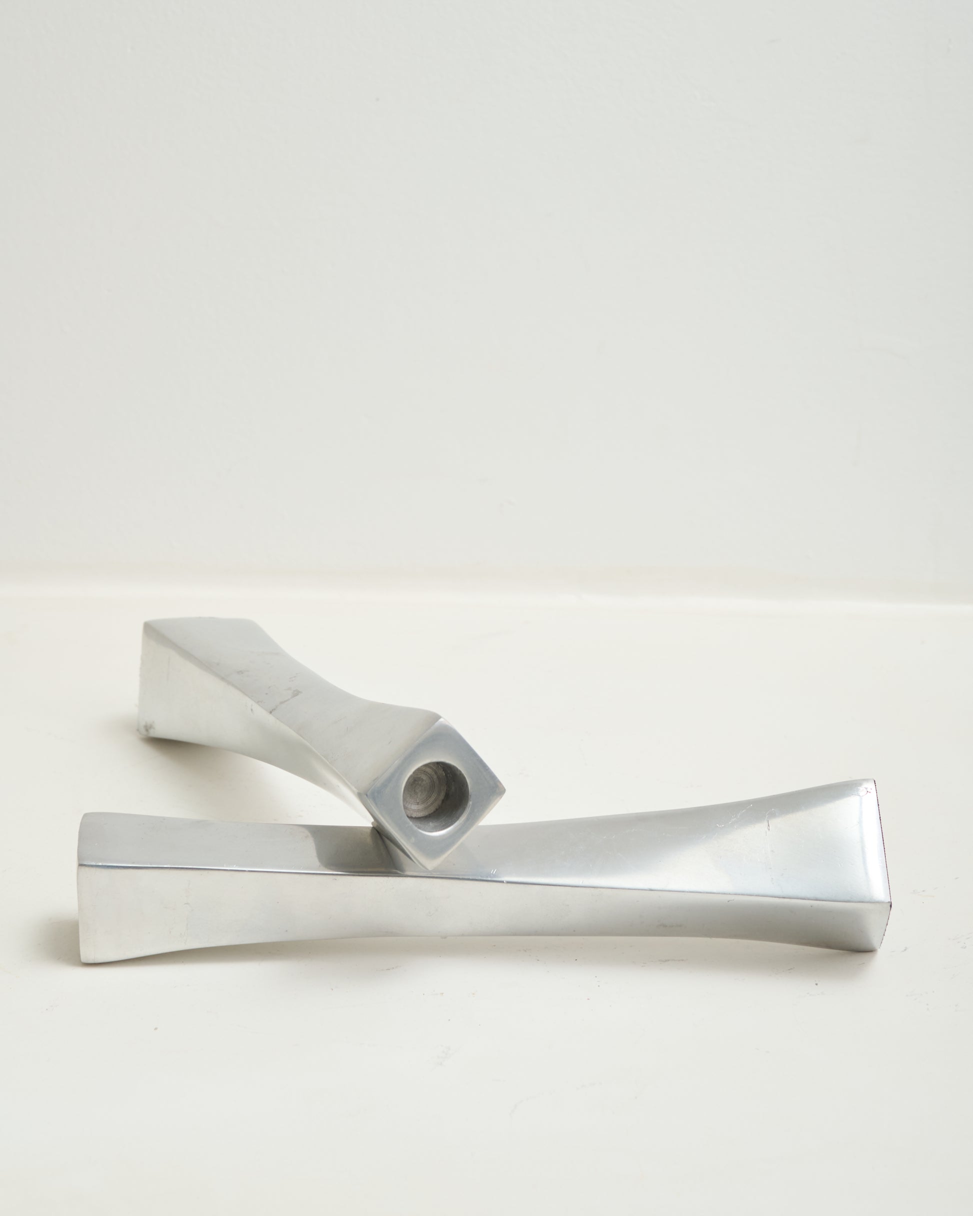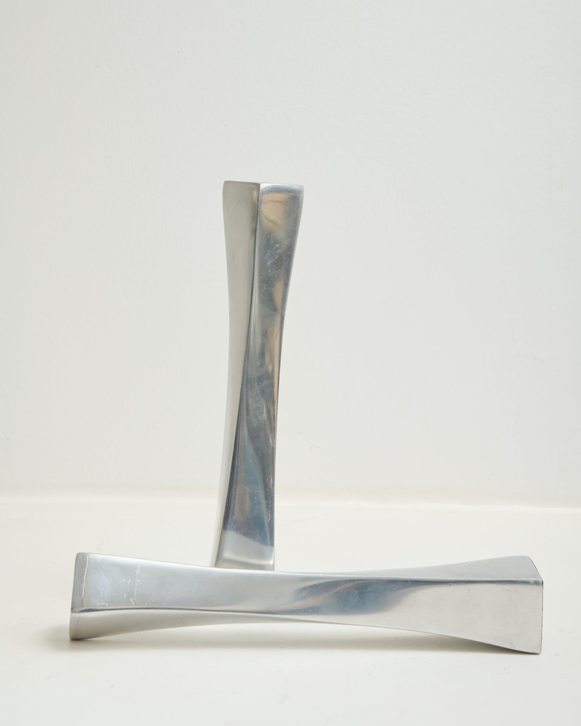 Deux chandeliers en fonte d'aluminium. Forme torsadée. Très bel état.