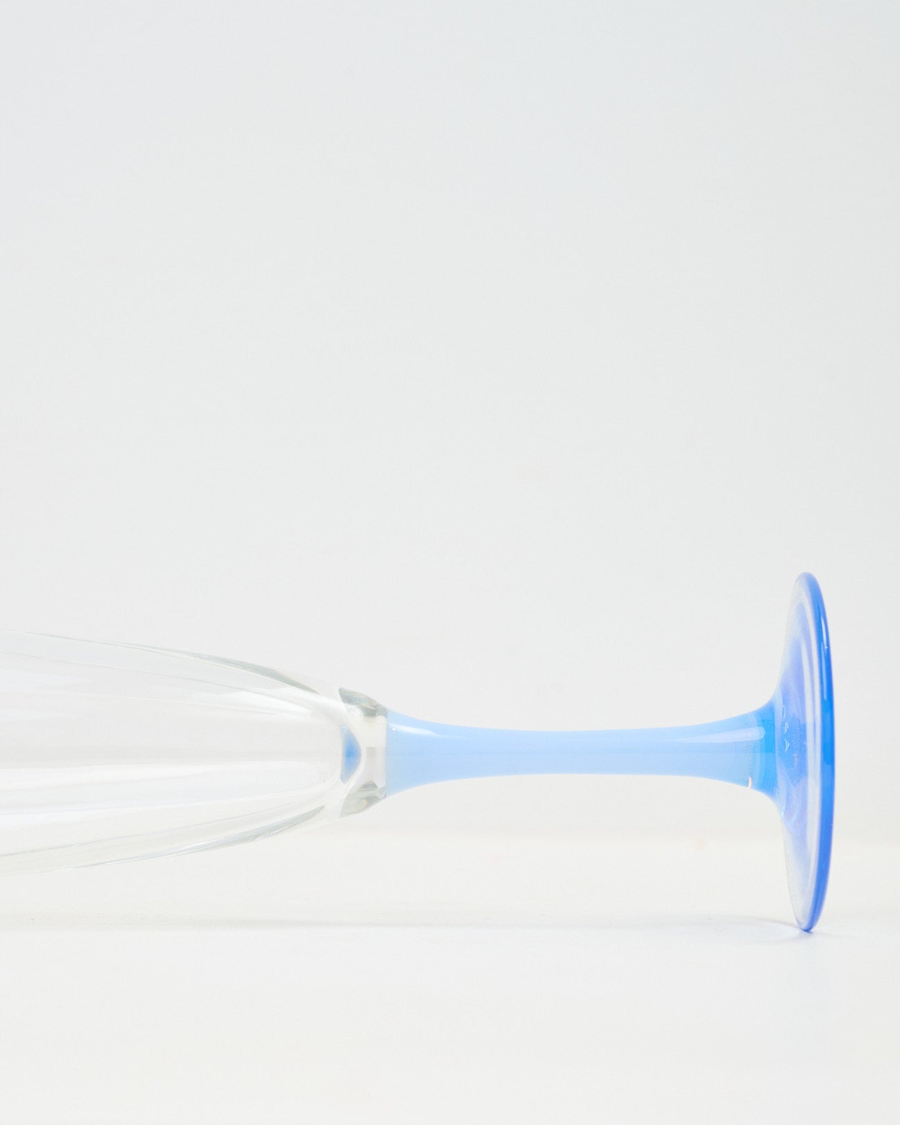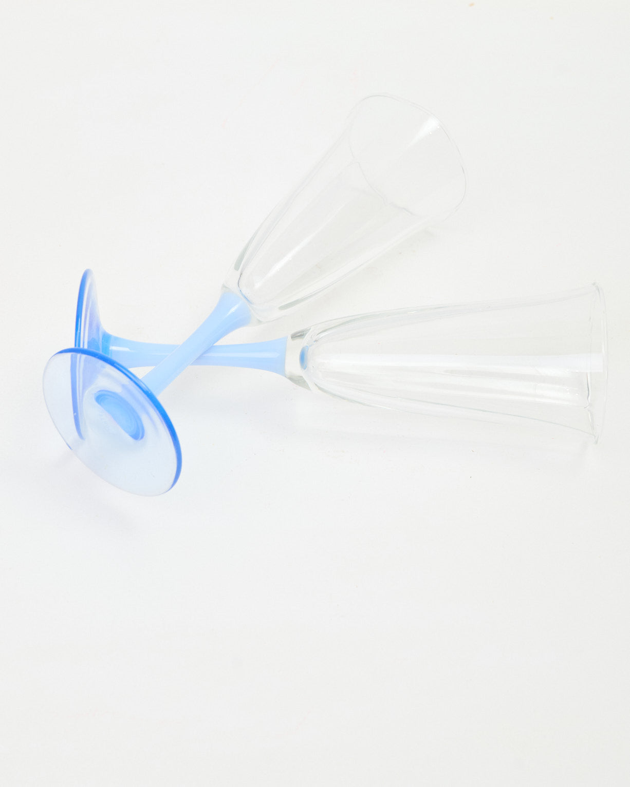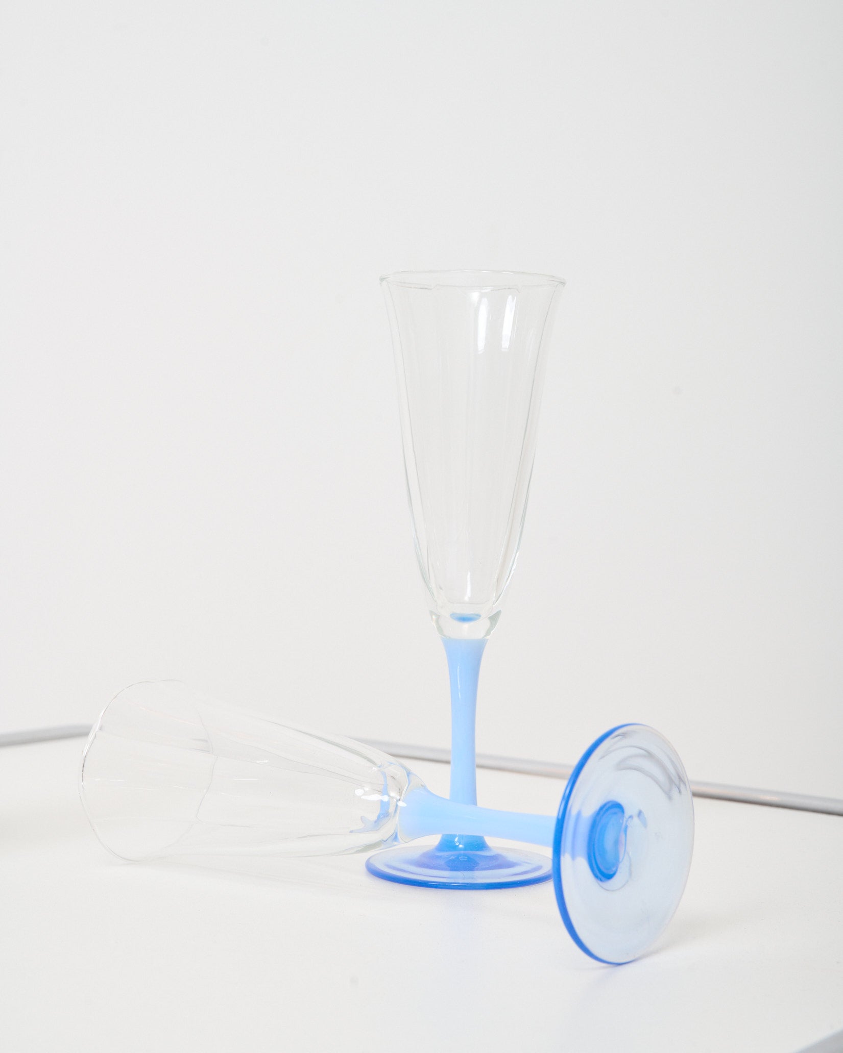 Duo de coupes de champagne bicolores des années 80. Pied bleu laiteux, crémeux. Très bel état.