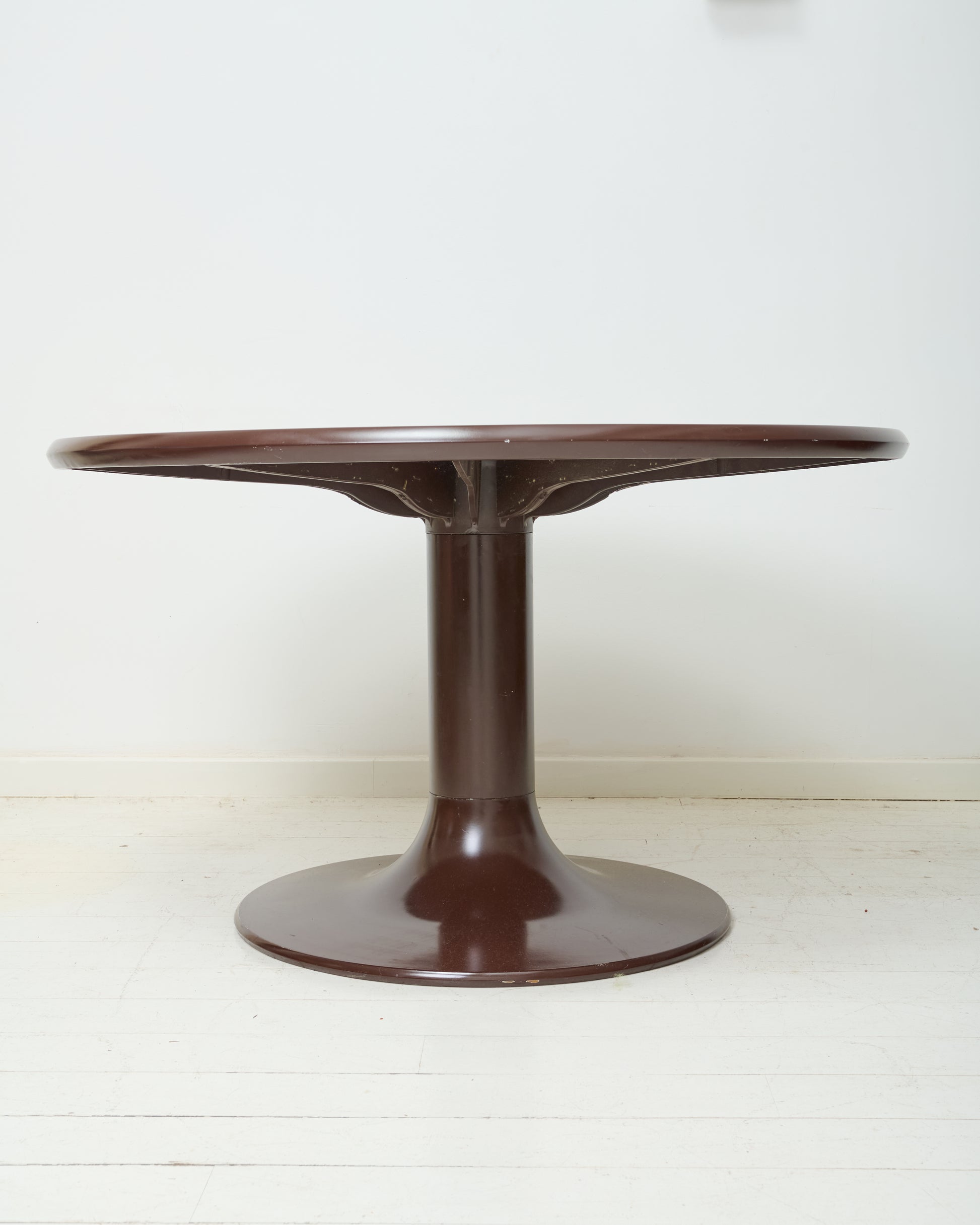 Table à manger ronde pied forme tulipe et 4 chaises kangourou marron de Ernst Moeckl pour Horn.