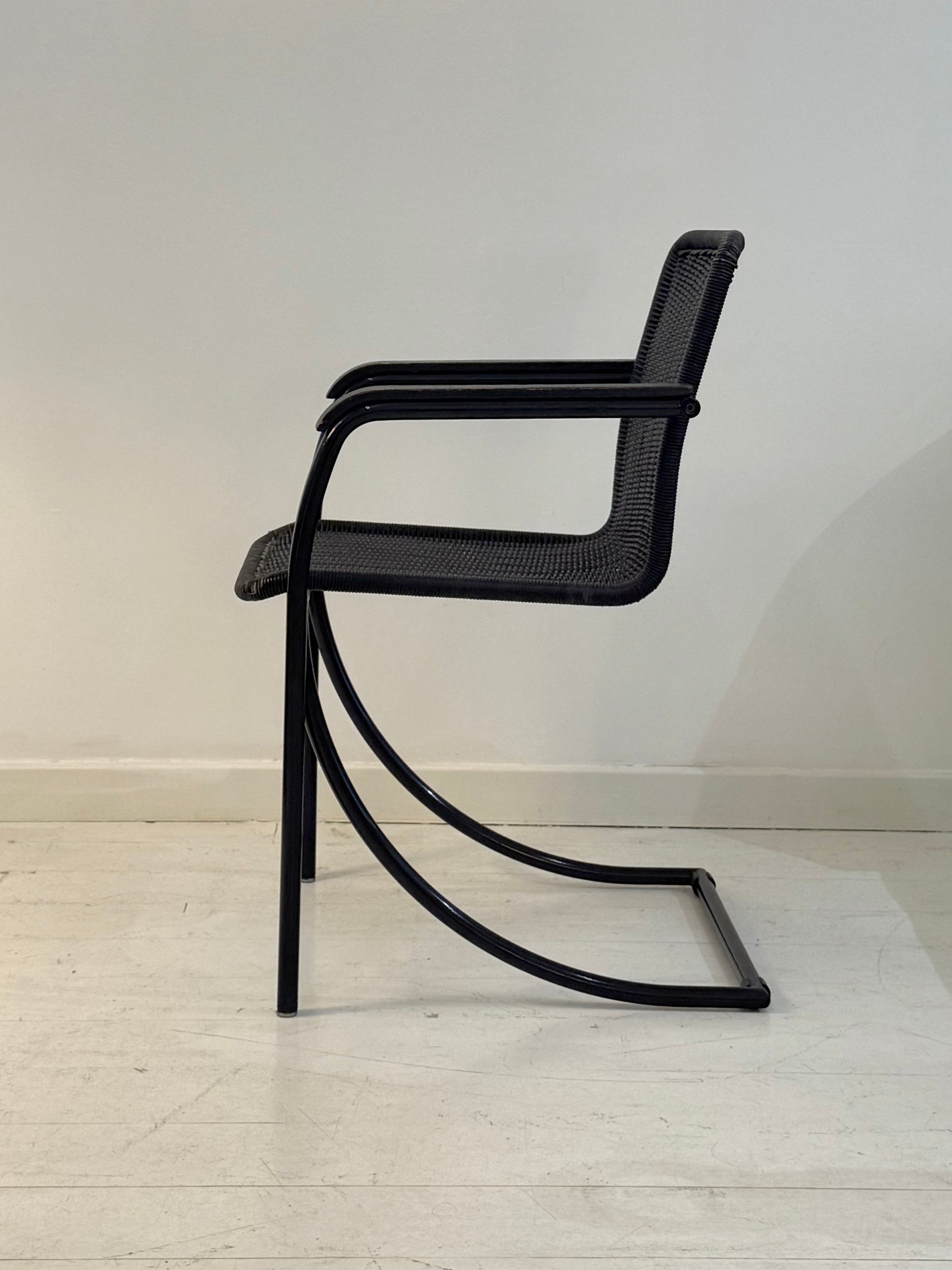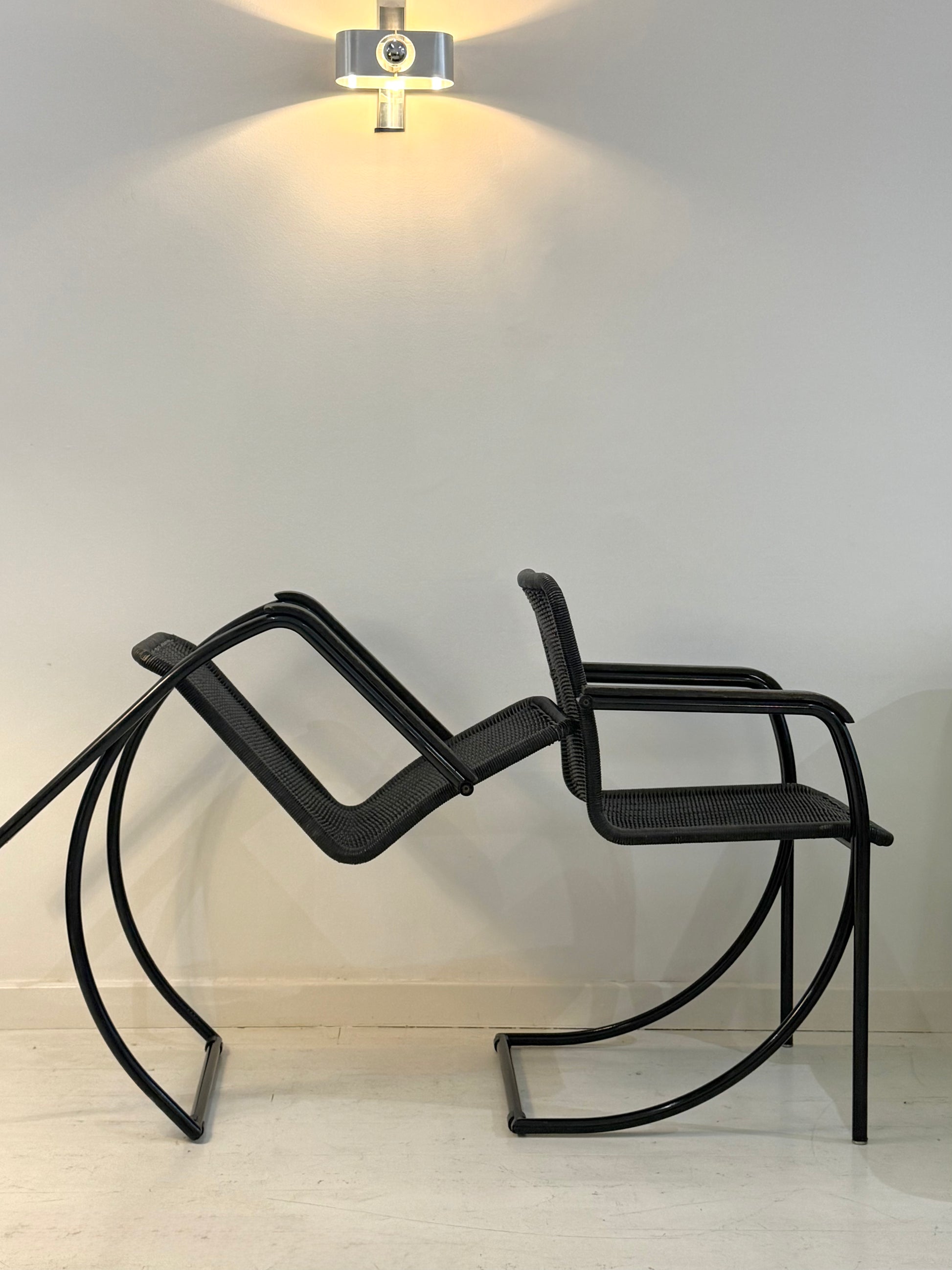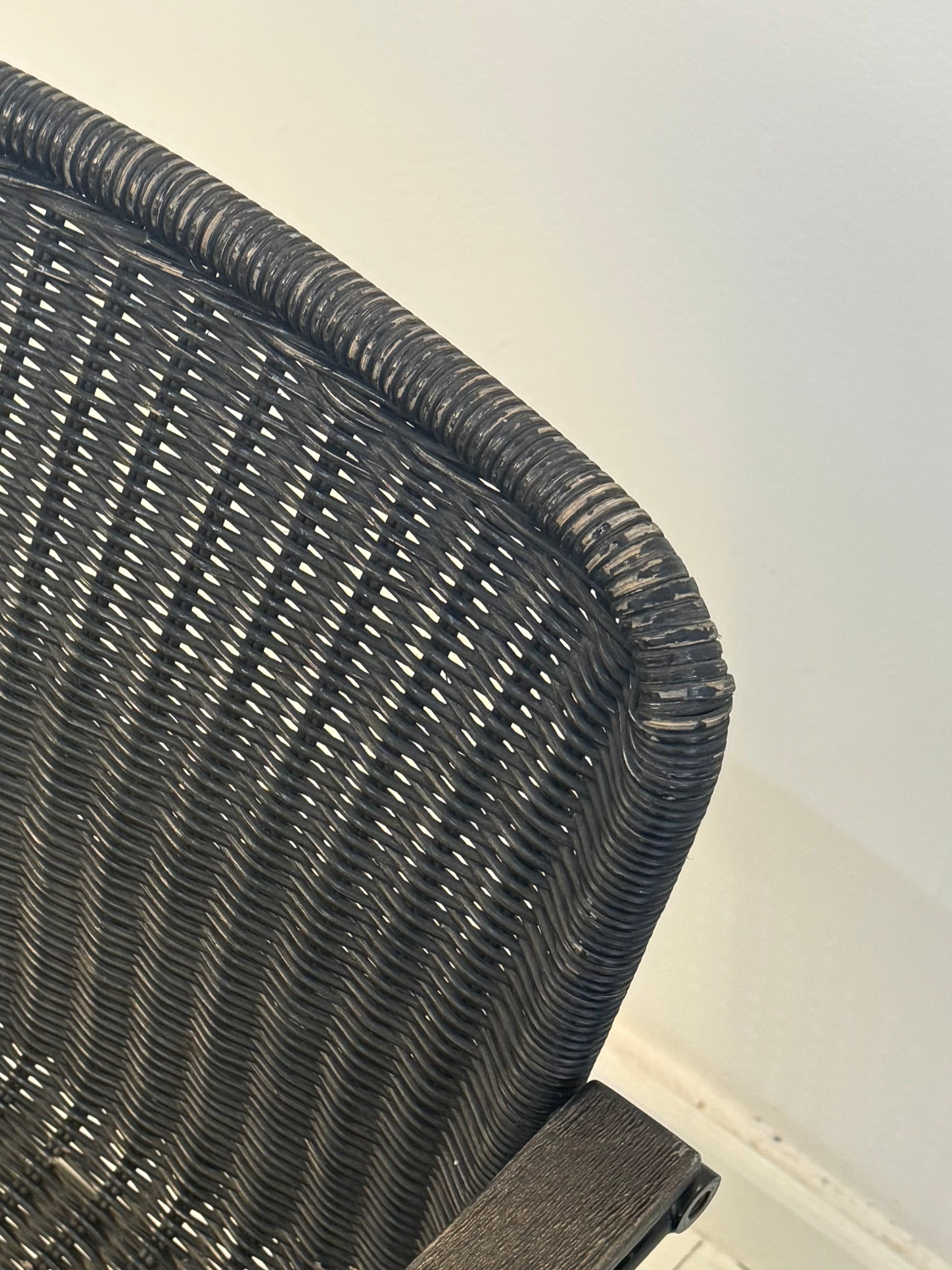 Fauteuil en osier et métal noir, Memphis, 1980s