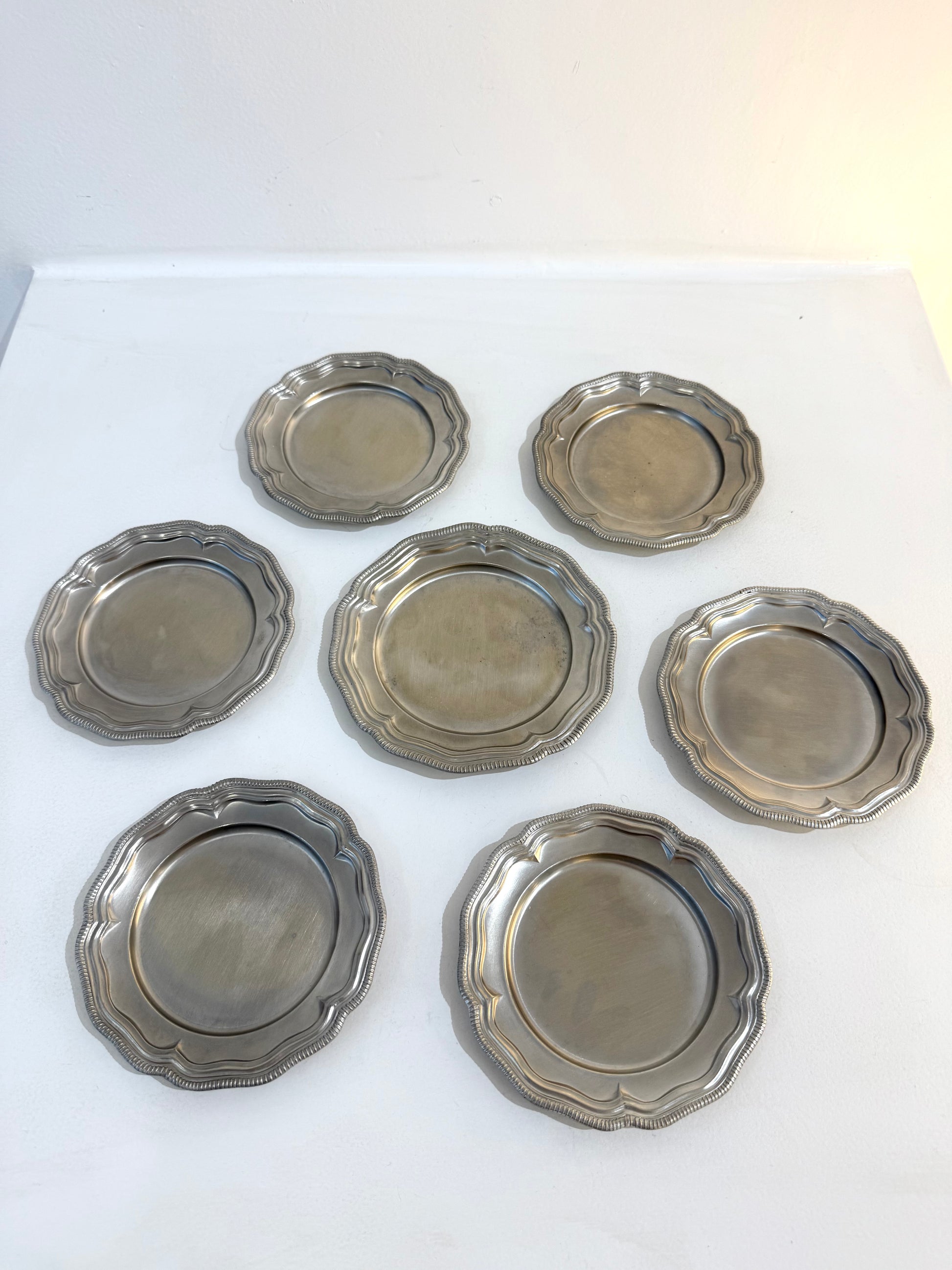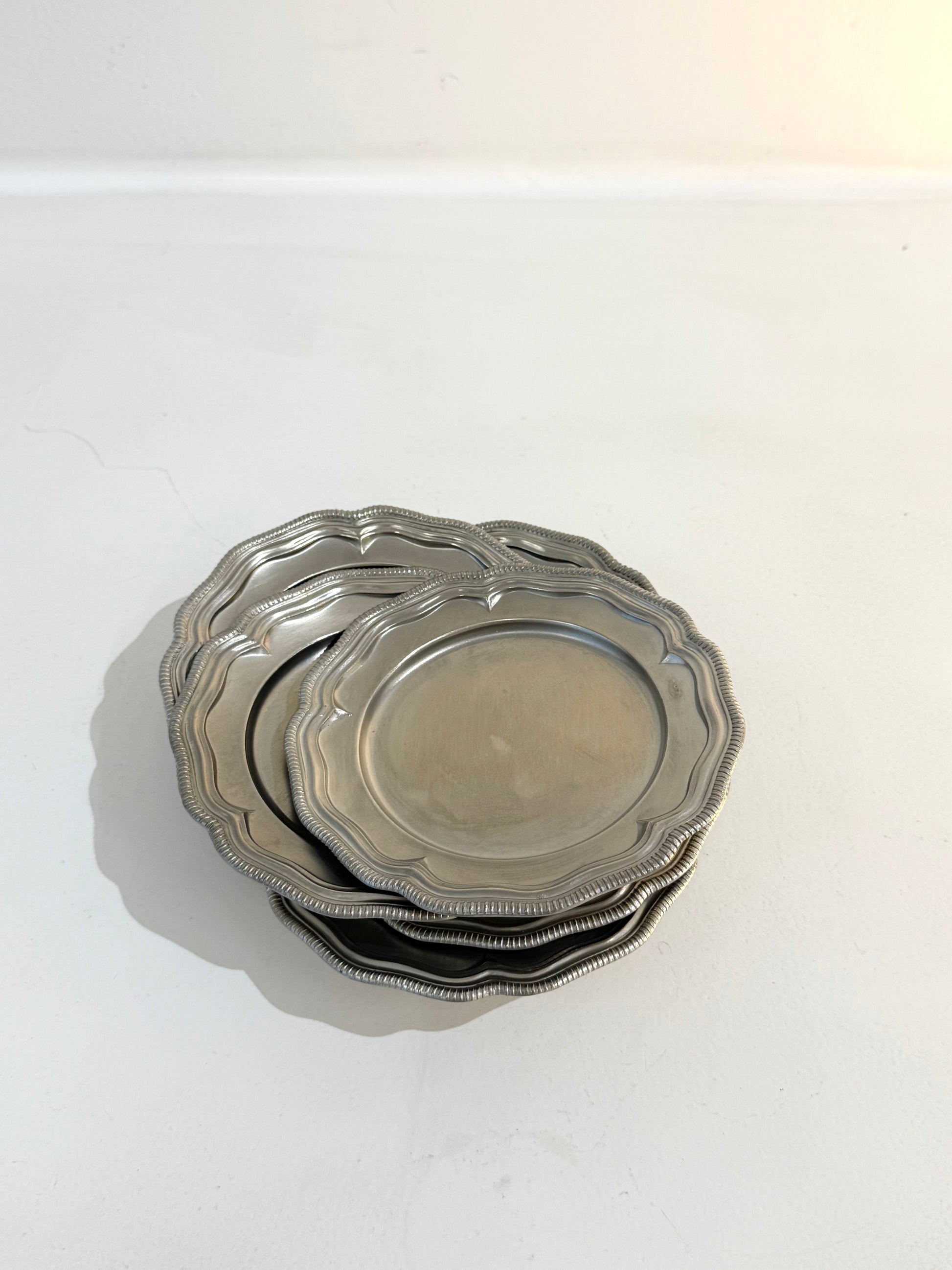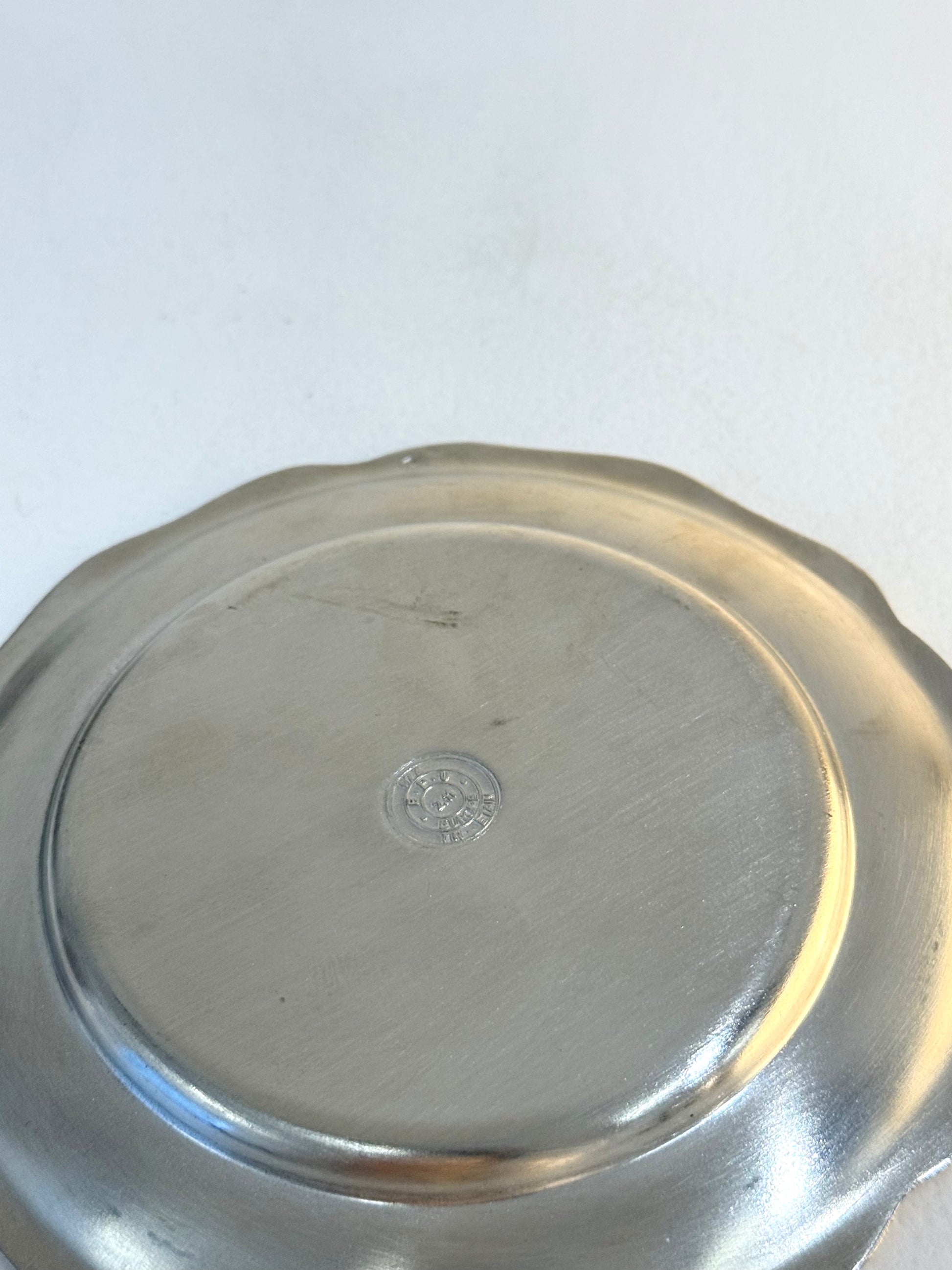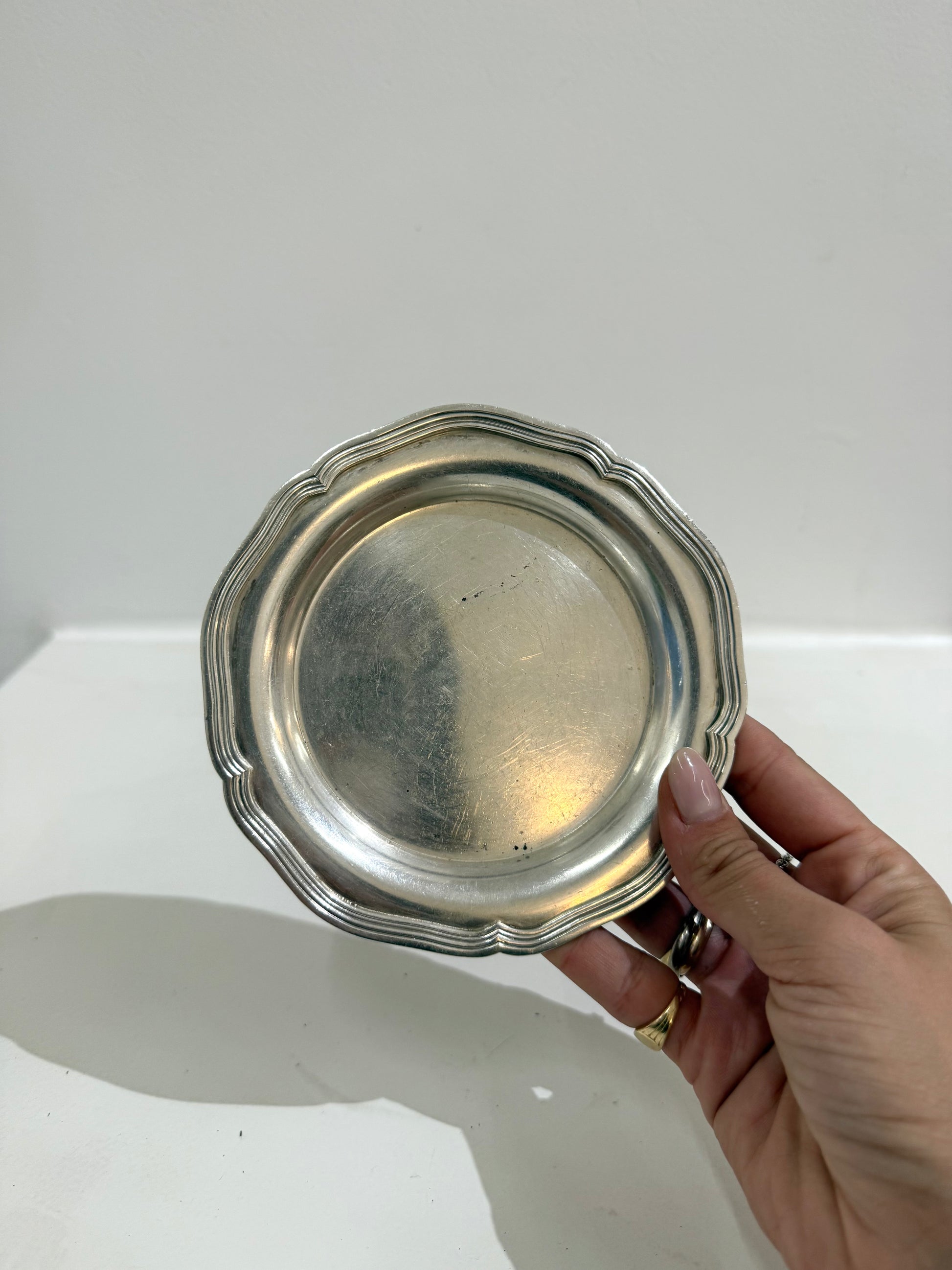 Dessous de bouteille et de verre qui peut être utilisée comme petite assiette de service en étain (poinçon 97%). Une est plus grande (dessous de bouteille). Vendu à l'unité. Très bel état.