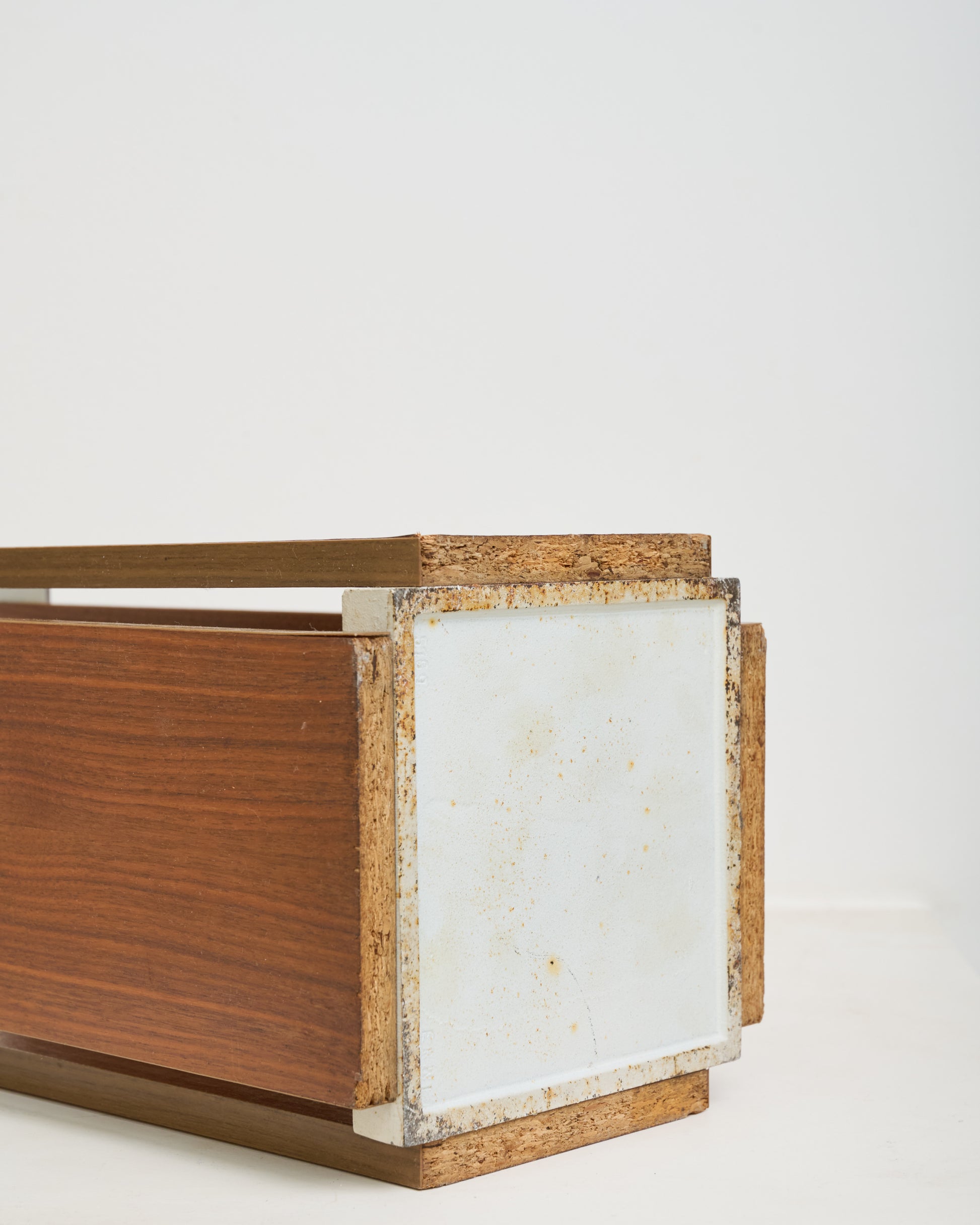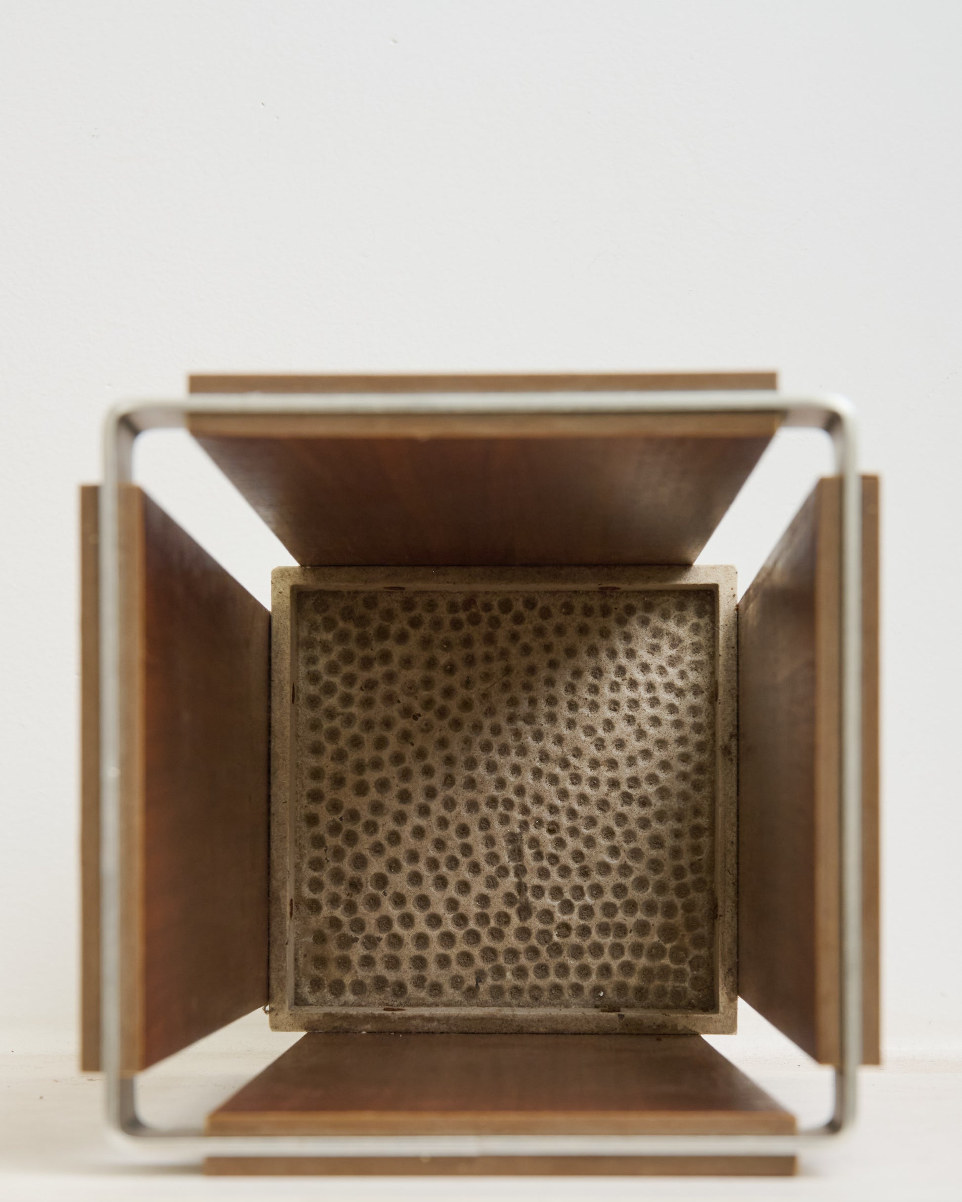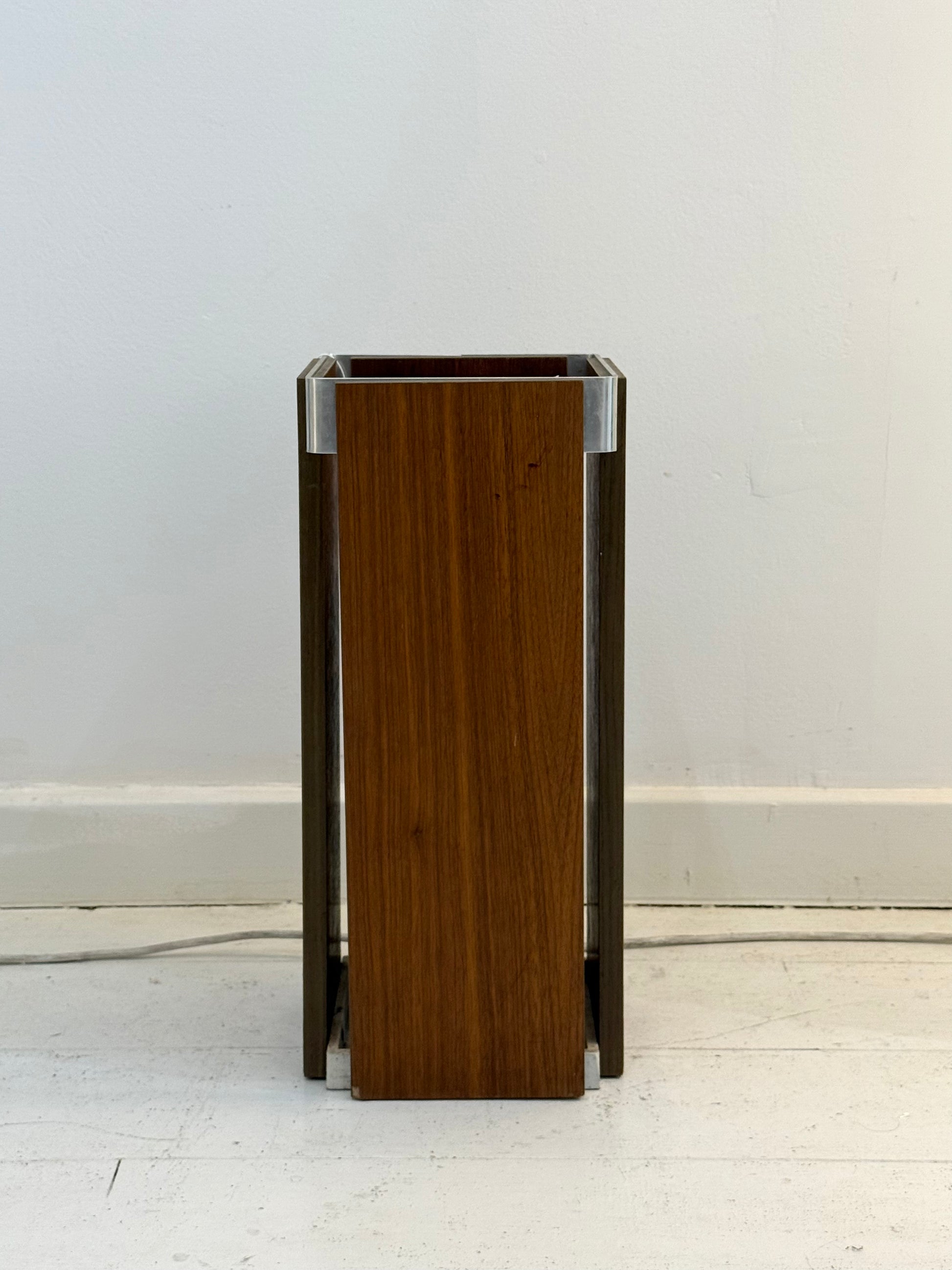 Porte parapluie scandinave en teck et métal des années 60-70. Forme carré. Très bel état.