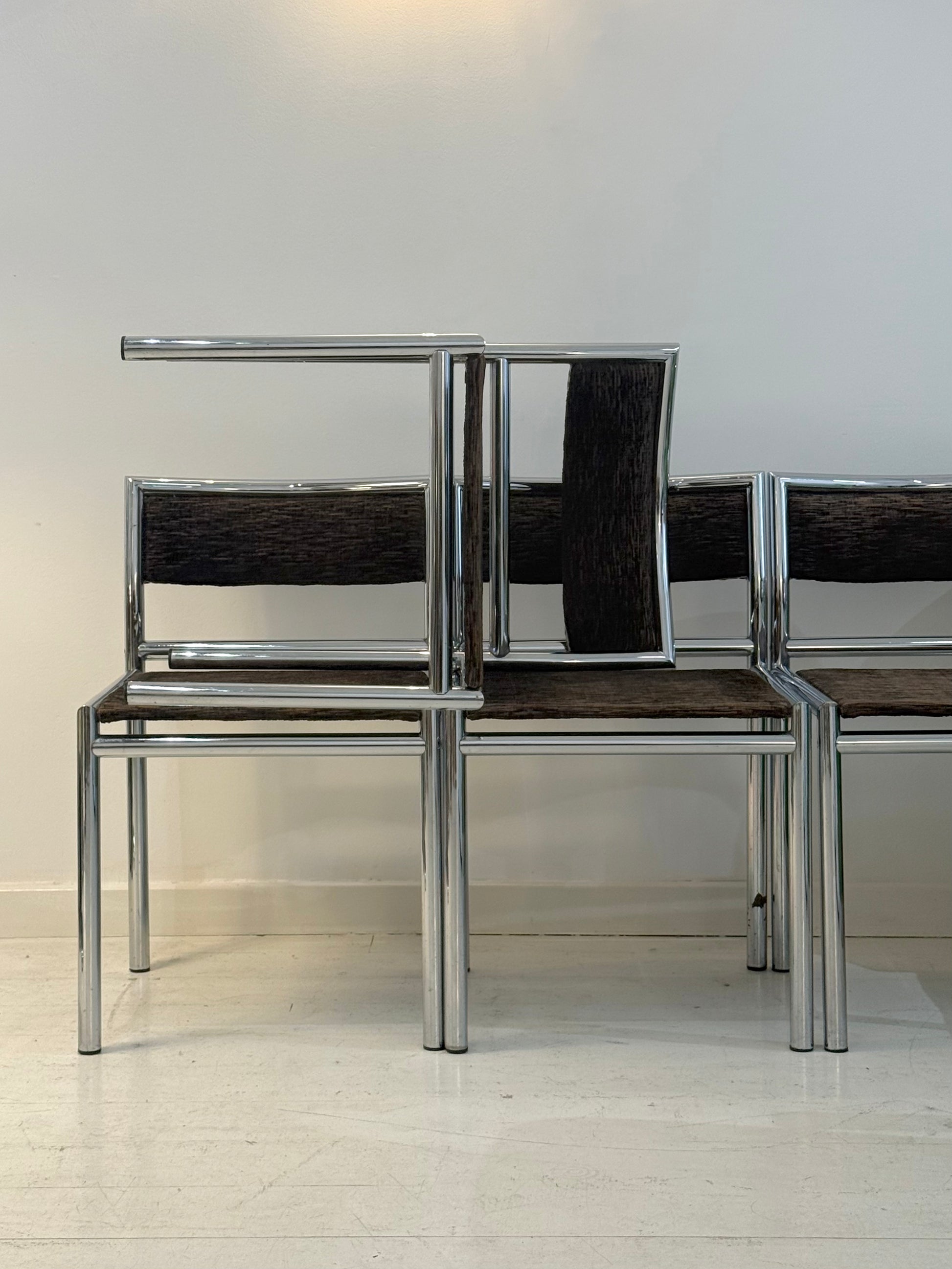 Quatre chaises tubulaires chrome et velours, 1970s