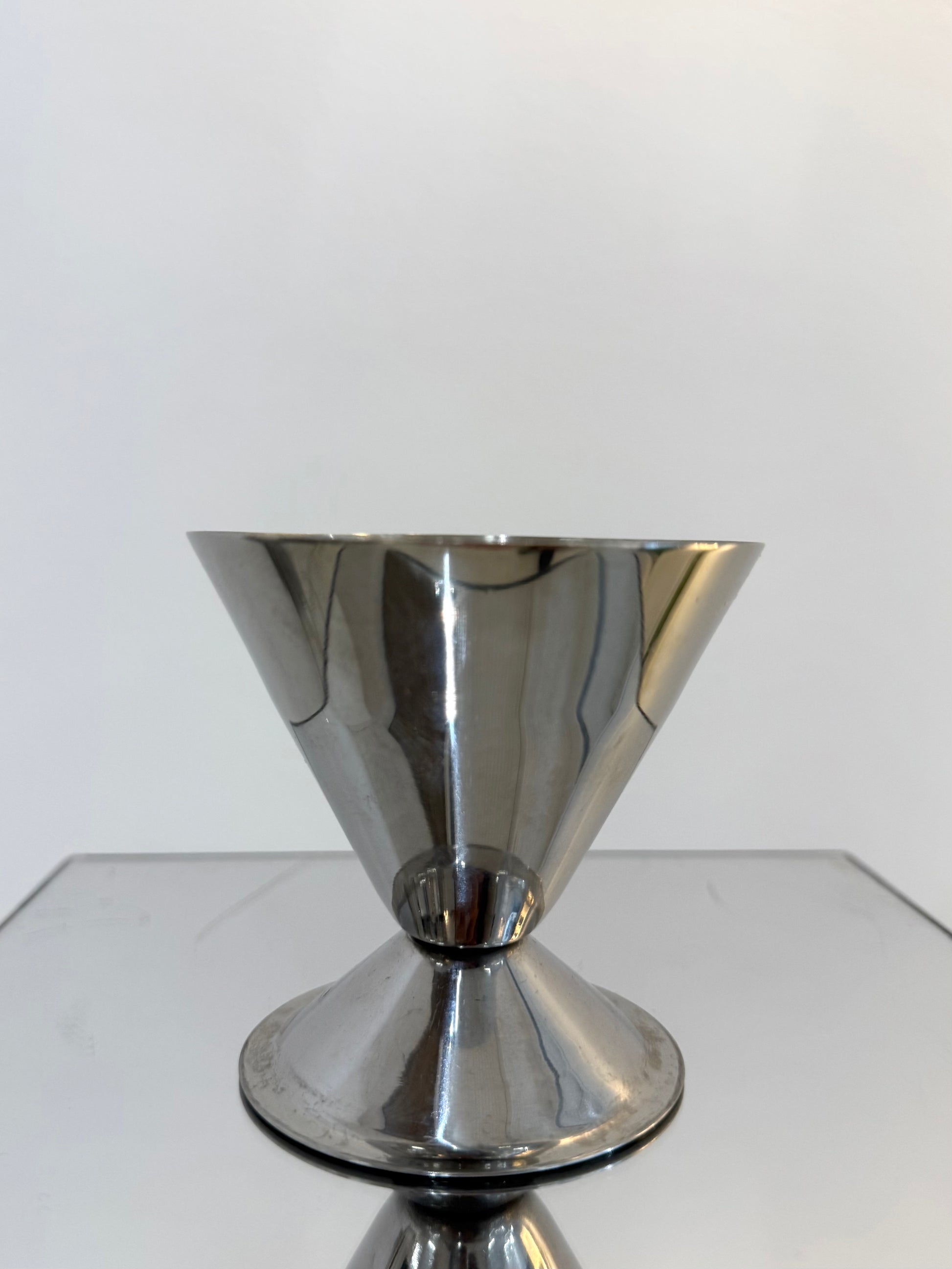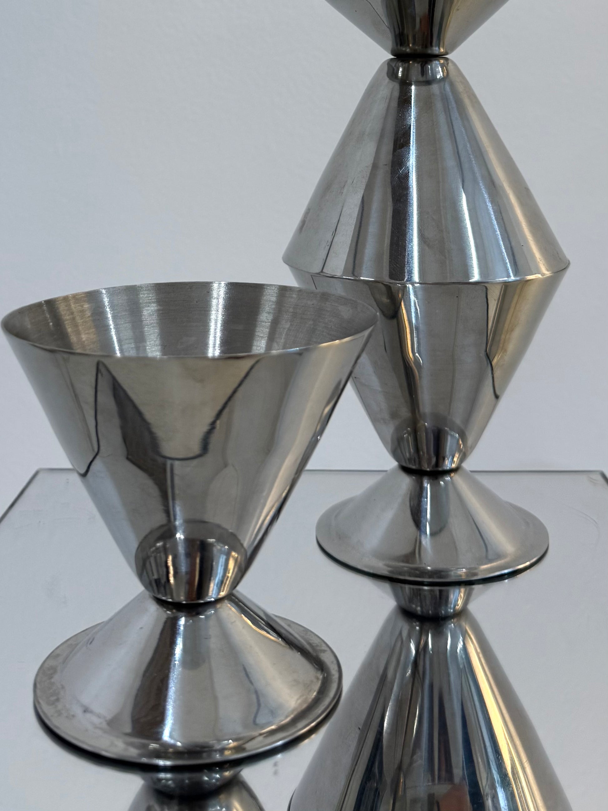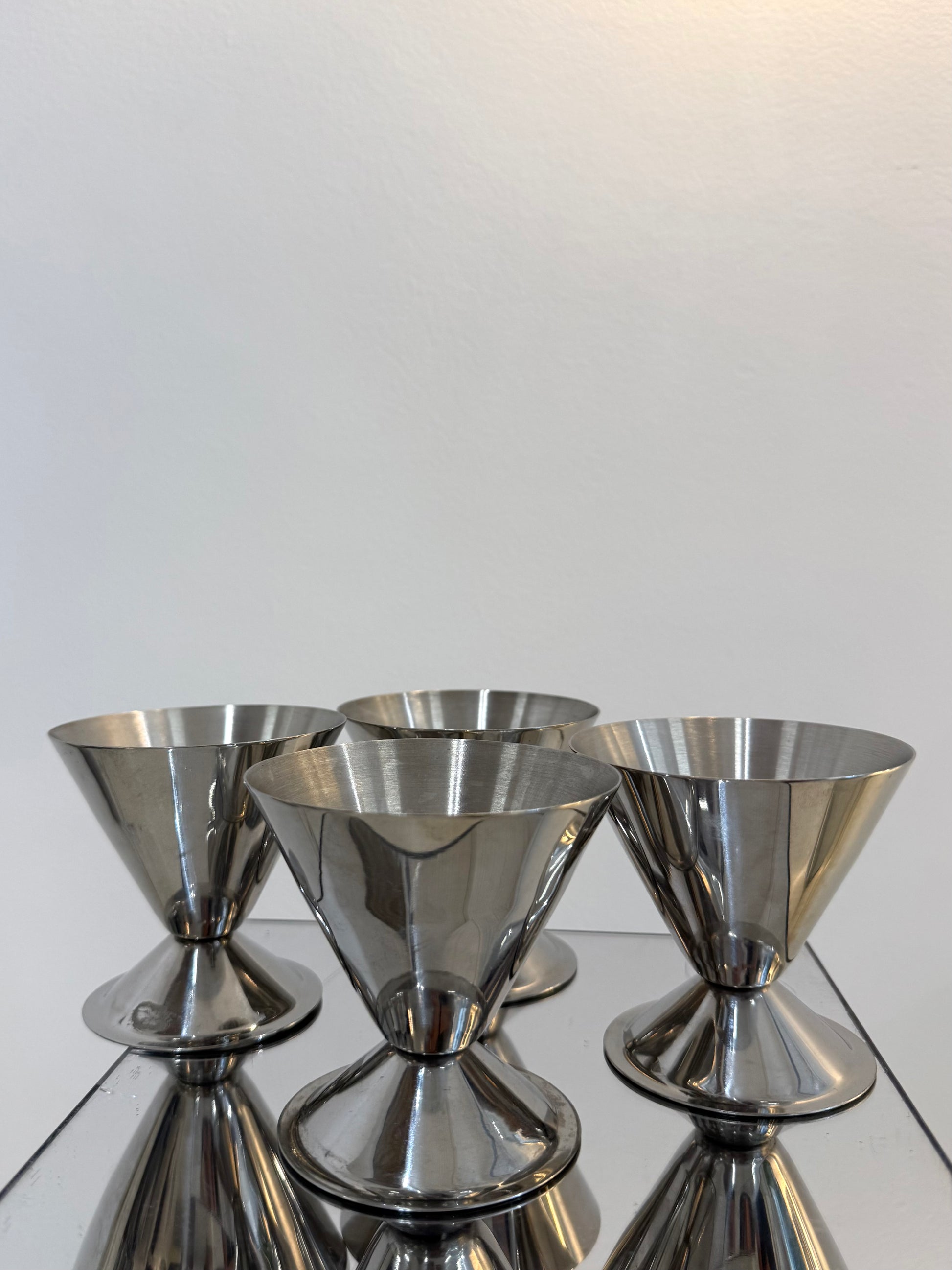 Coupes ou ramequins en inox de forme diabolo. Style Memphis, 80s. Très bel état.