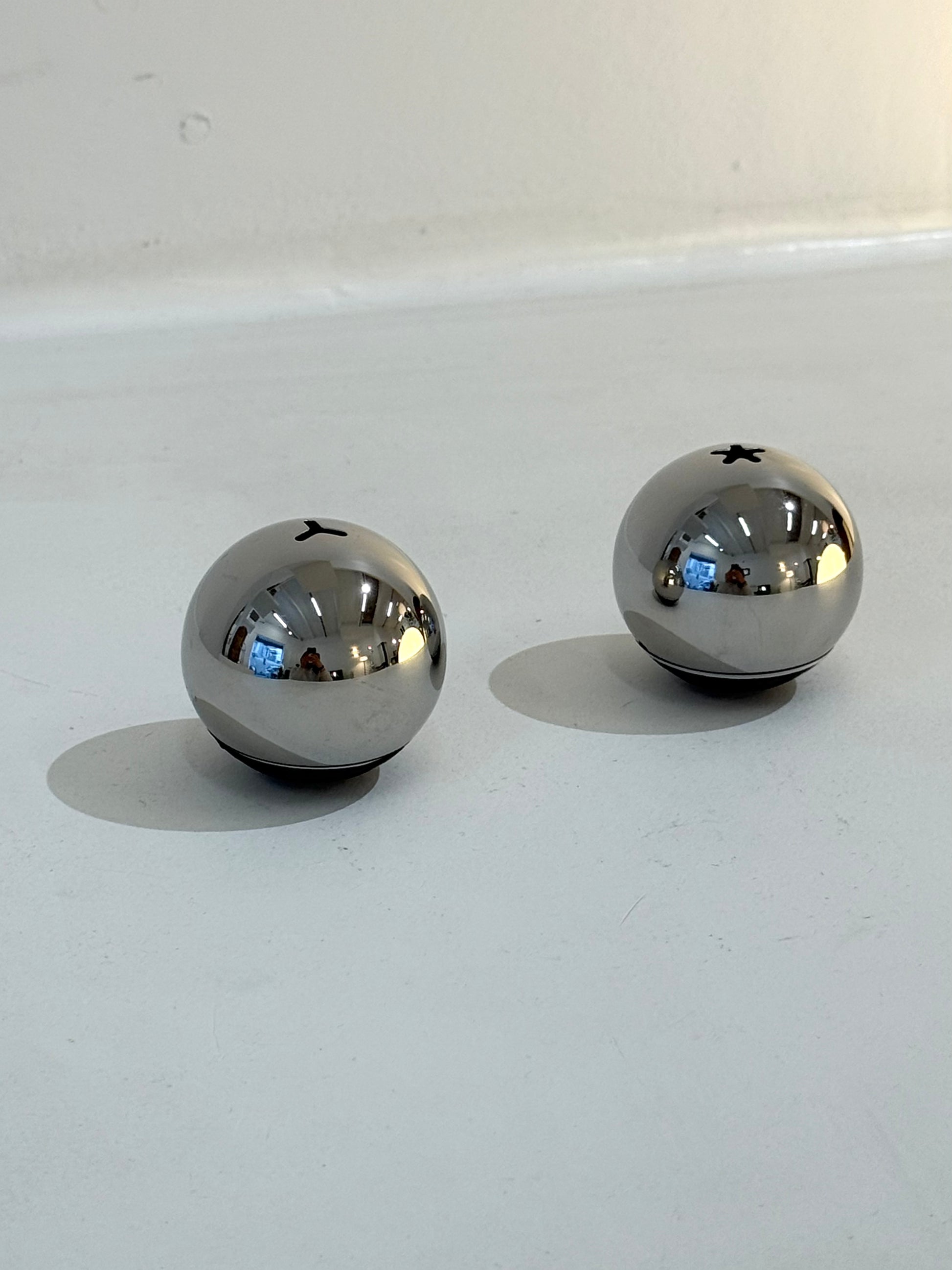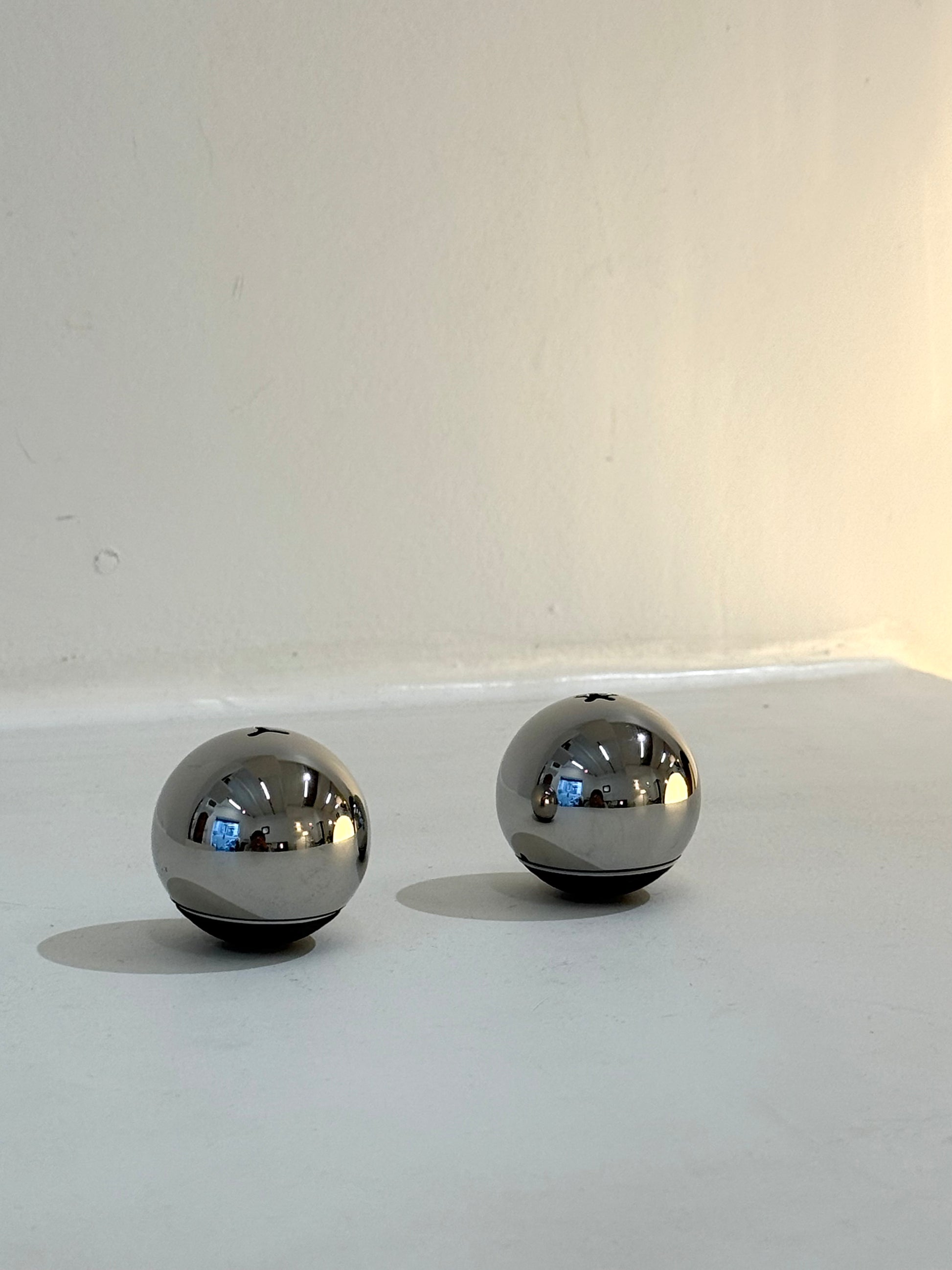 Salière & poivrière "Audo" ou "Menu", Henriette Melchiorsen au Danemark. Forme boule. Très bel état.