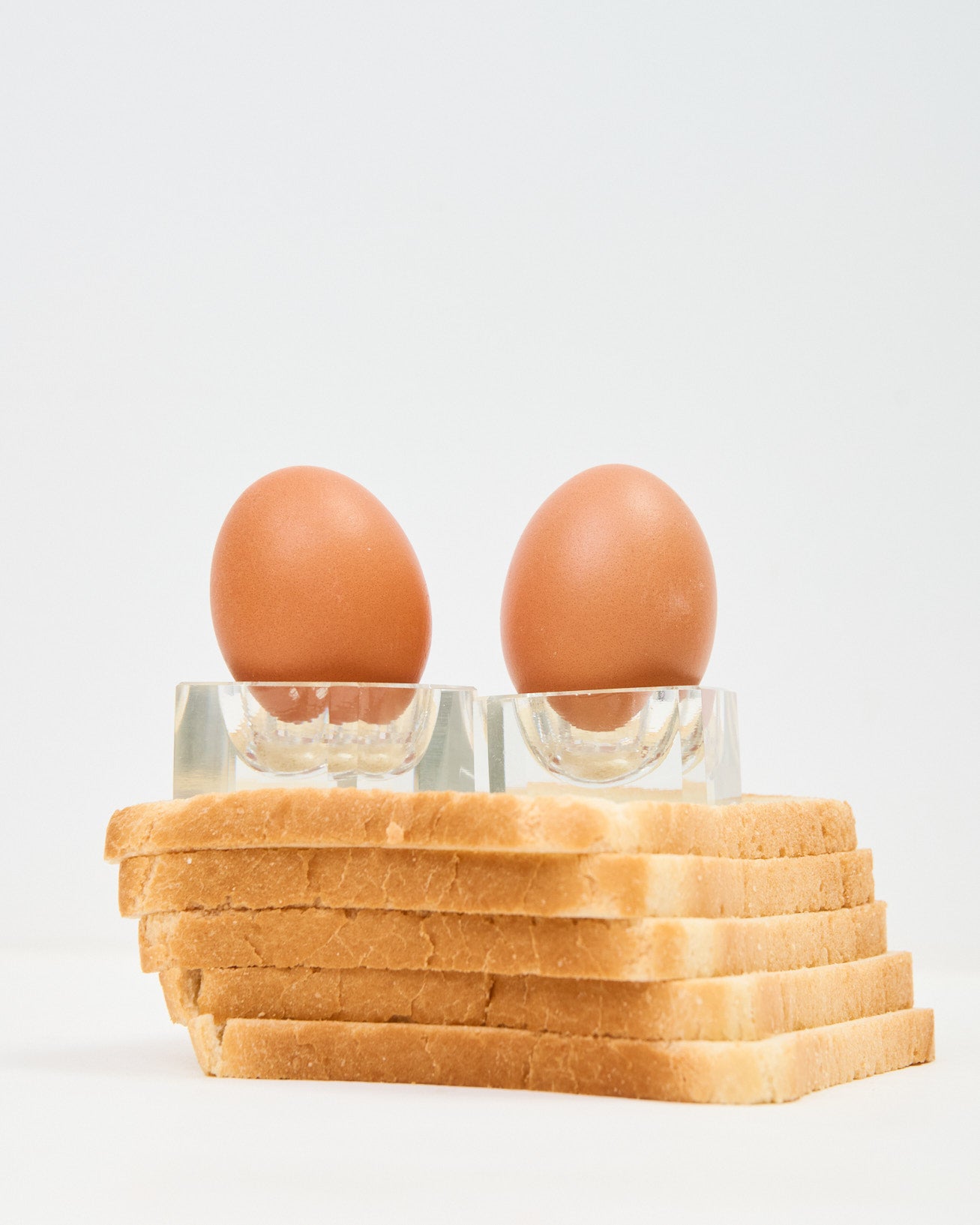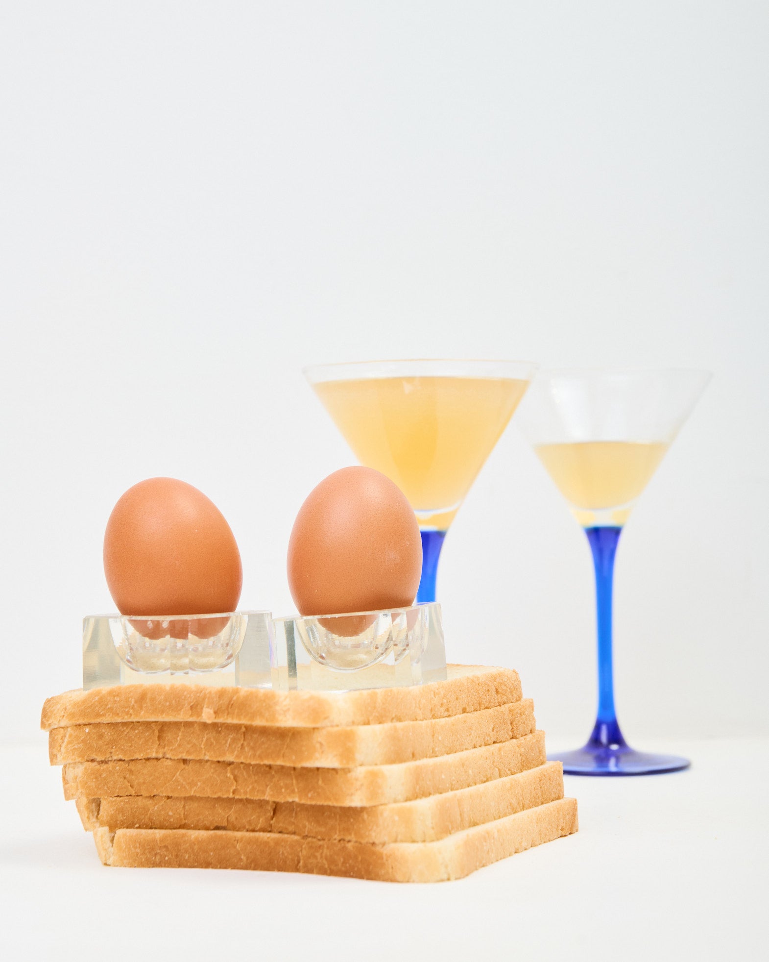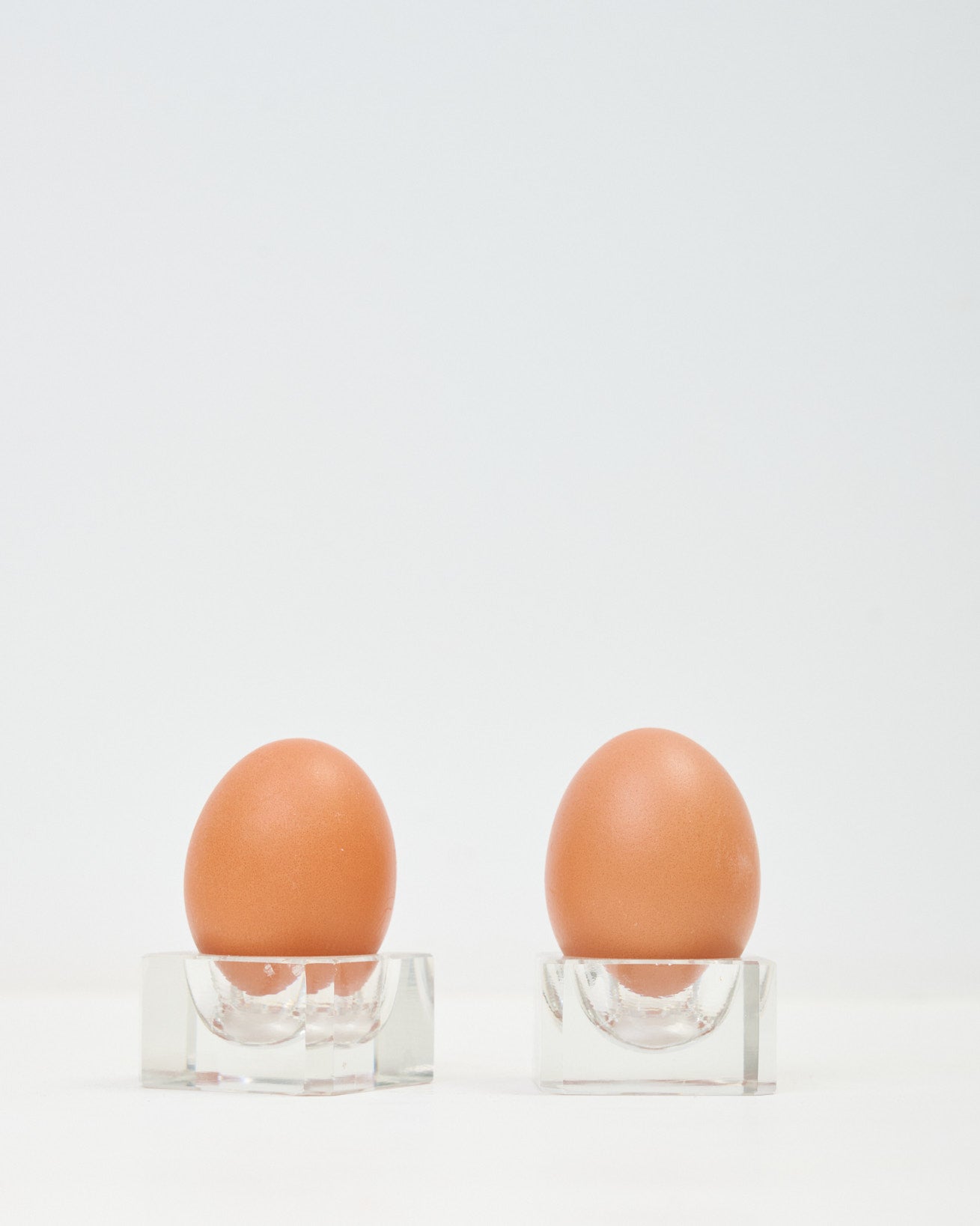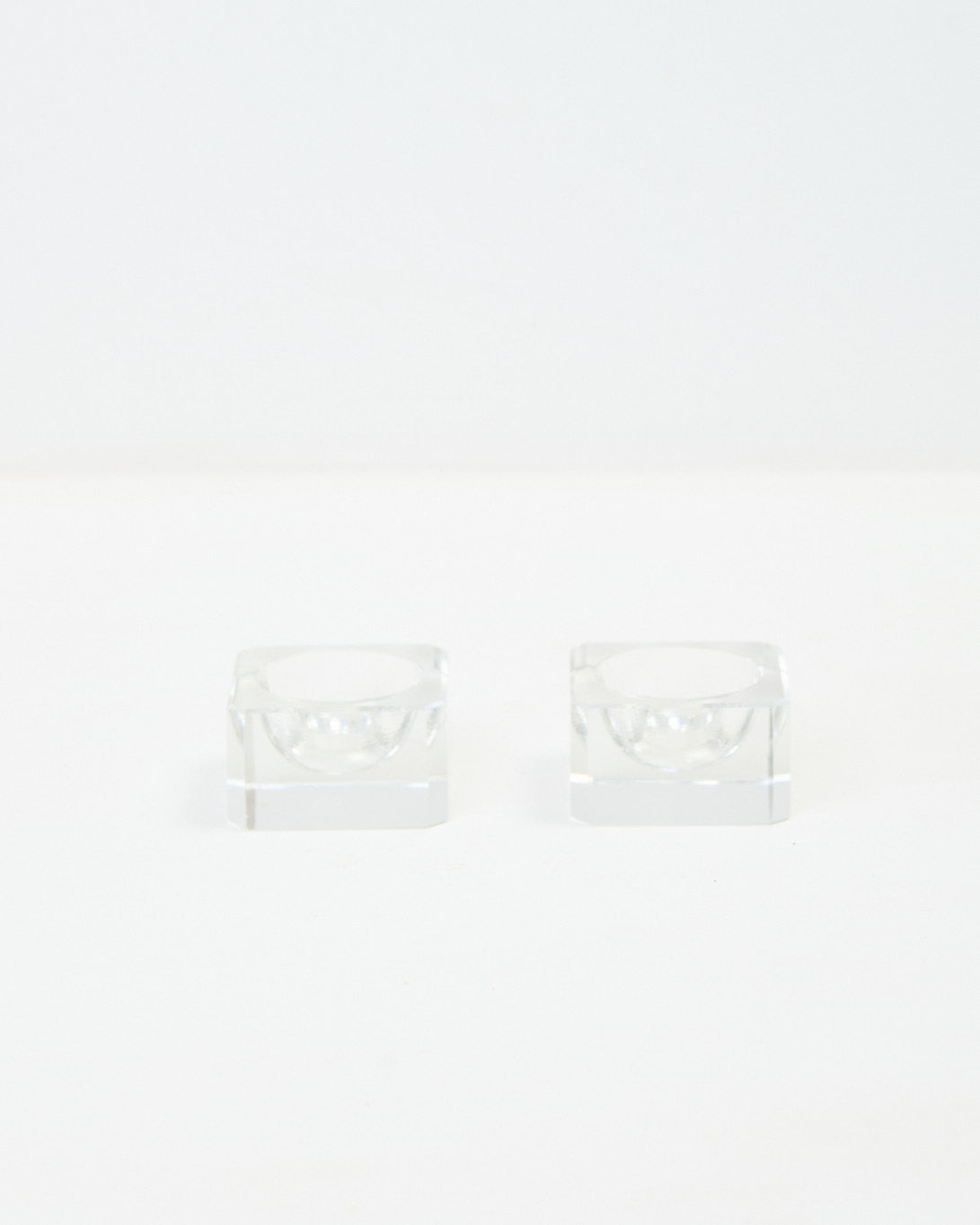 Duo de contenant en verre de forme cubique et creusée. Utilisation en tant que salière et poivrier ou en coquetier. Très bel état.