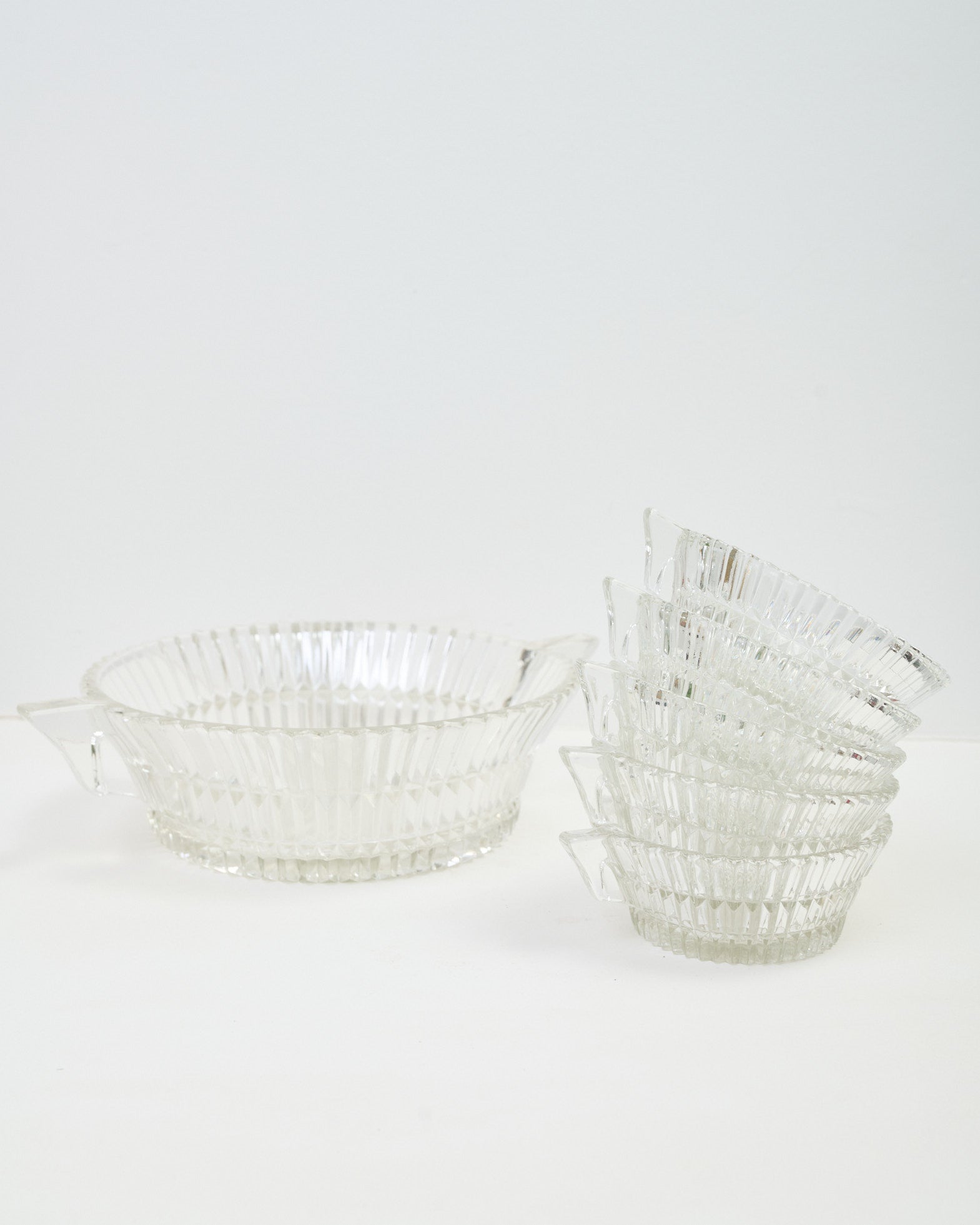 Dimensions : Saladier D. 21cm H. 7cm. Coupelle D. 11cm H. 4,5cm.