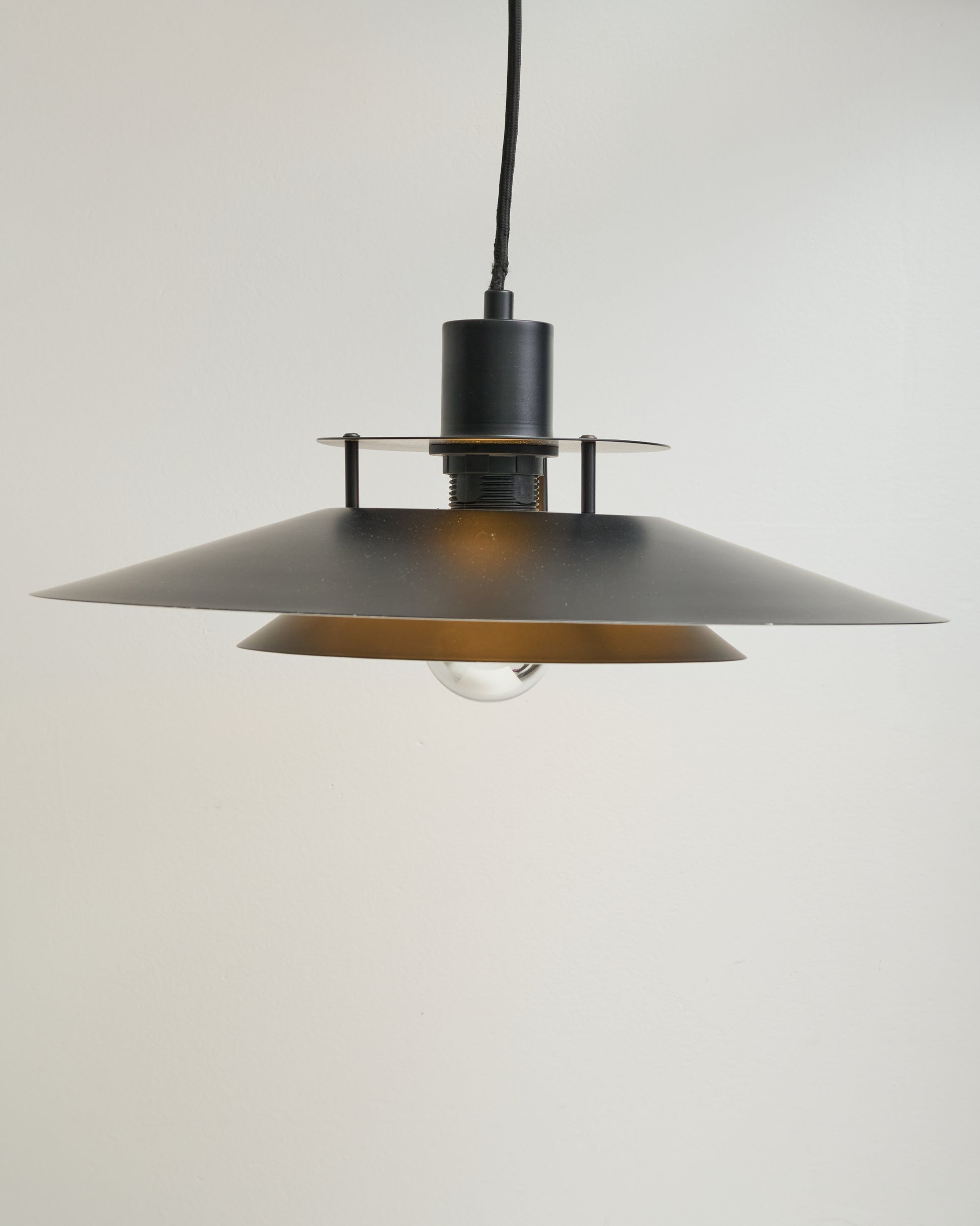 Suspension en métal noir et blanc dans le goût de Poul Henningsen. Douille E27. Ampoule non incluse. Bel état malgré de légères traces d'usures sur le métal.