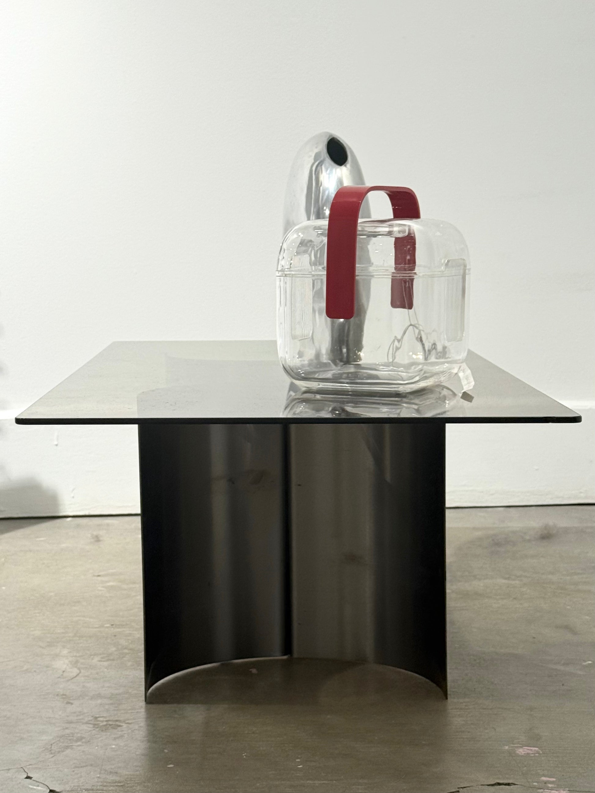 Table basse dans le goût de François Monnet pour Kappa dans les années 70 en France. Bel état malgré quelques traces d'usage (petit accroc sur le verre).