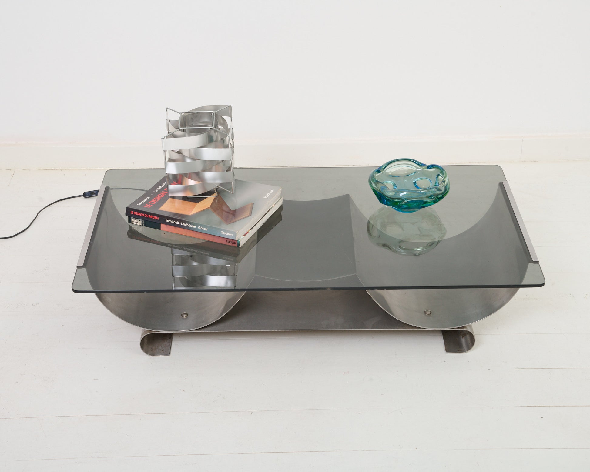 Table Basse par François Monnet pour Kappa en 1974. Très bel état malgré quelques traces d'usage (légères rayures). Un boulon manquant sur le pied n'altérant rien à l'utilisation ou maintien de la table.