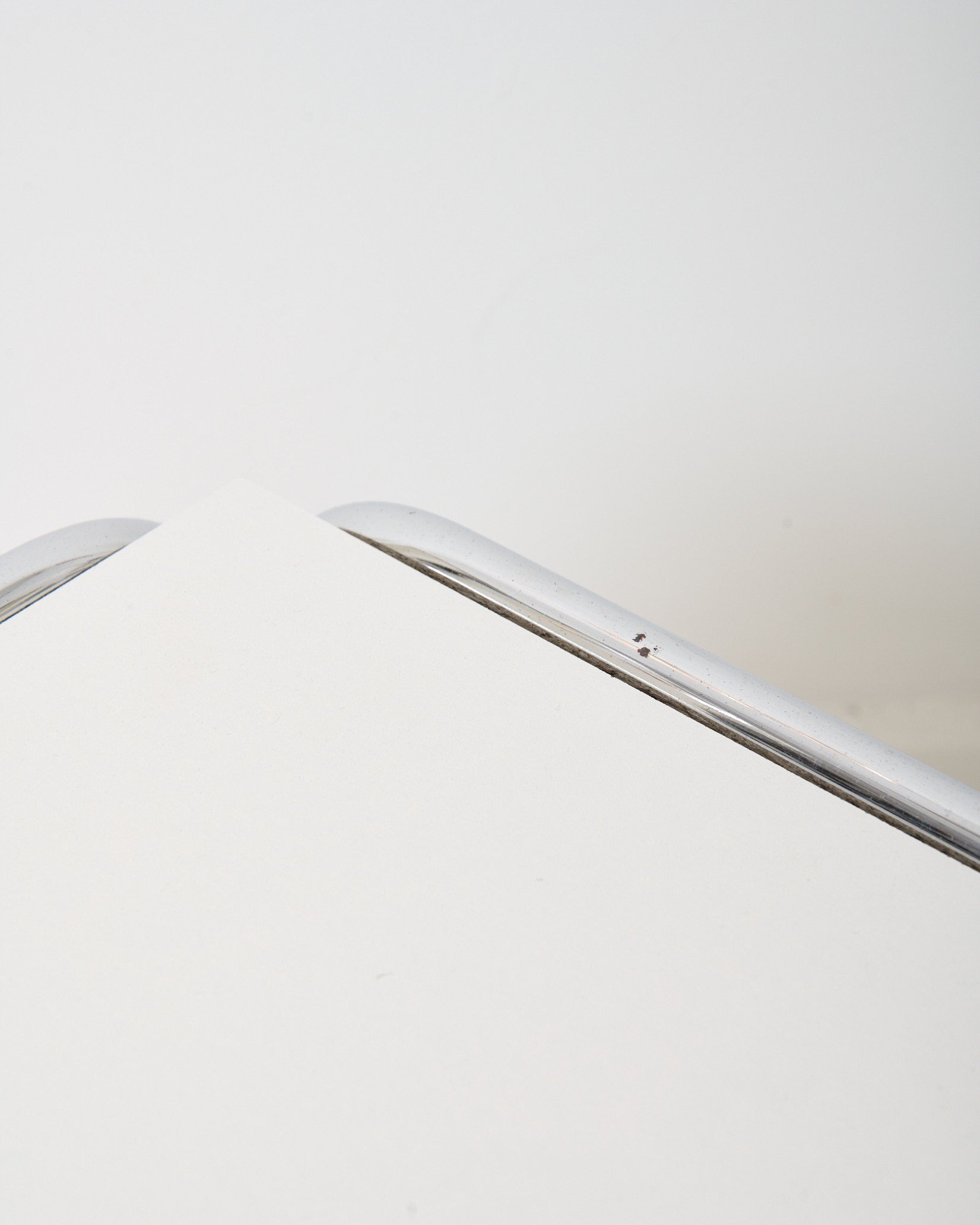 Table basse avec une structure tubulaire en chrome et plateau en mélaminé blanc des années 70. Très bel état.