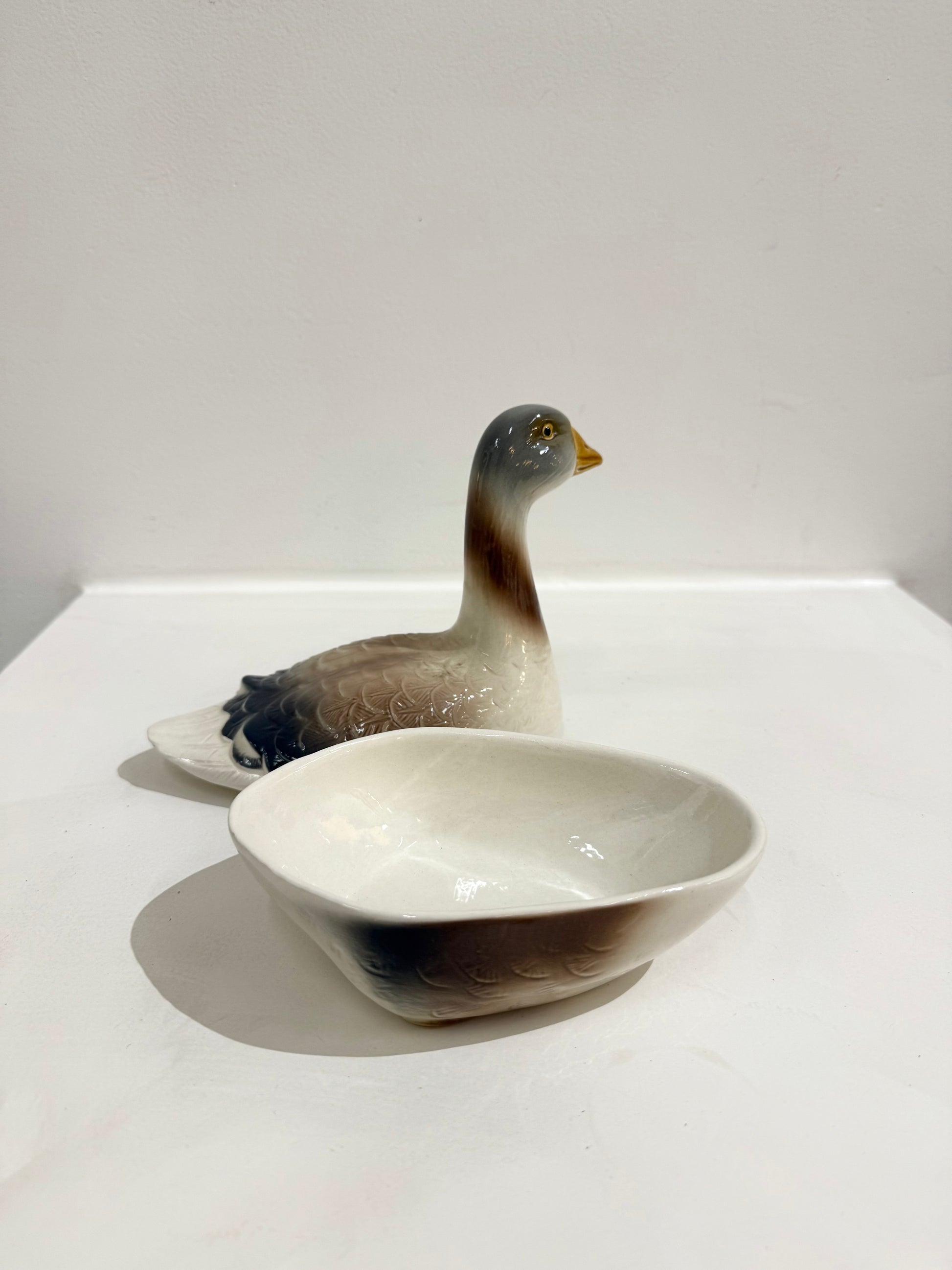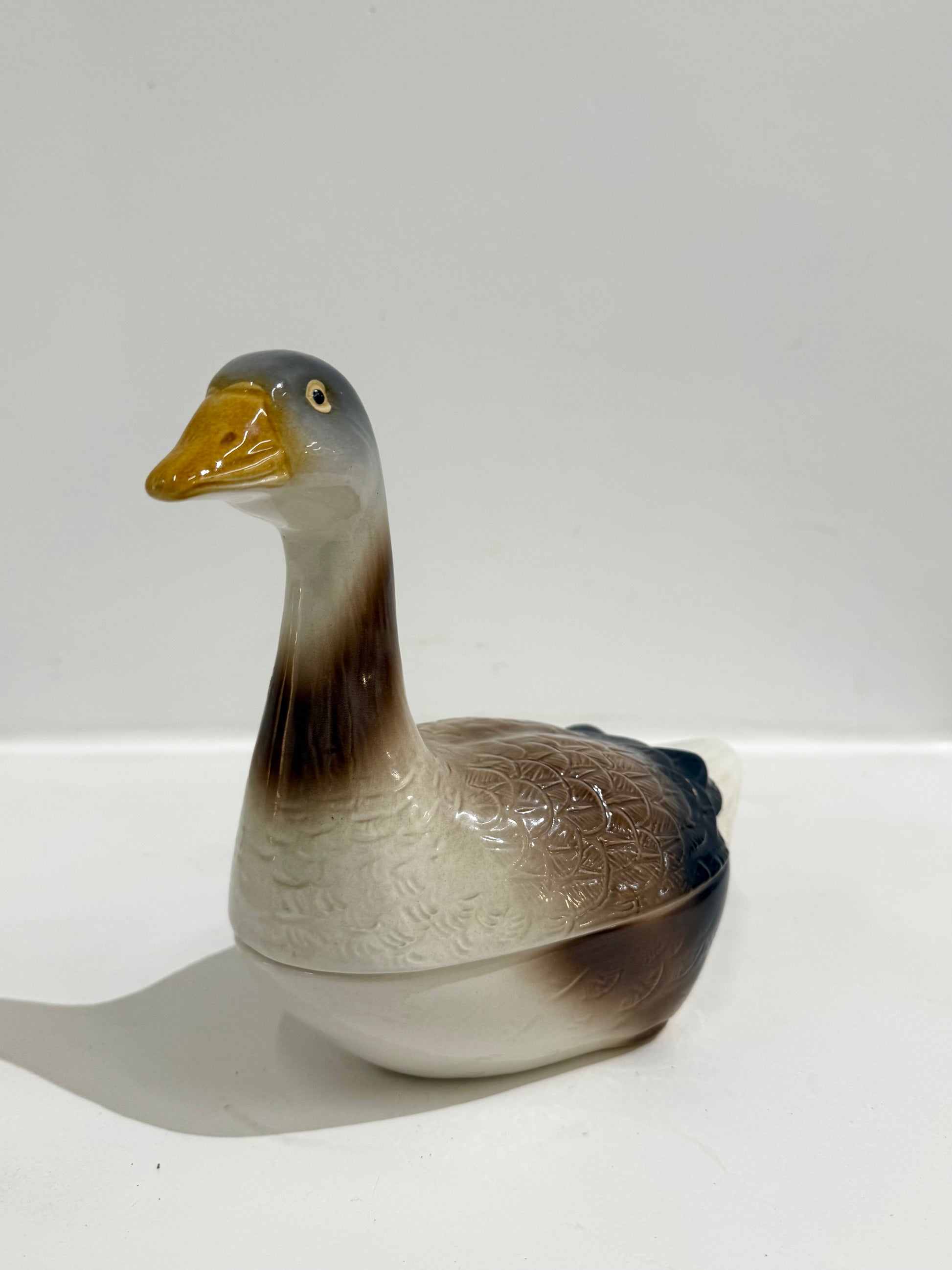 Terrine en céramique de la forme dune oie de Michel Caugant dans les années 1950s. Très bel état.