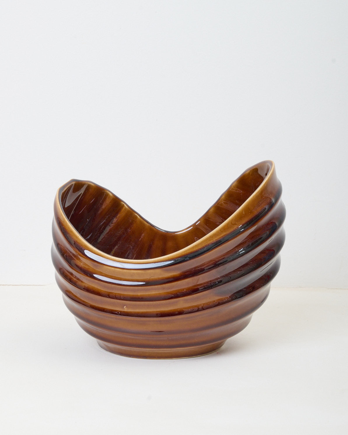 Grand vase en faïence marron de forme Coquillage. Très bel état.