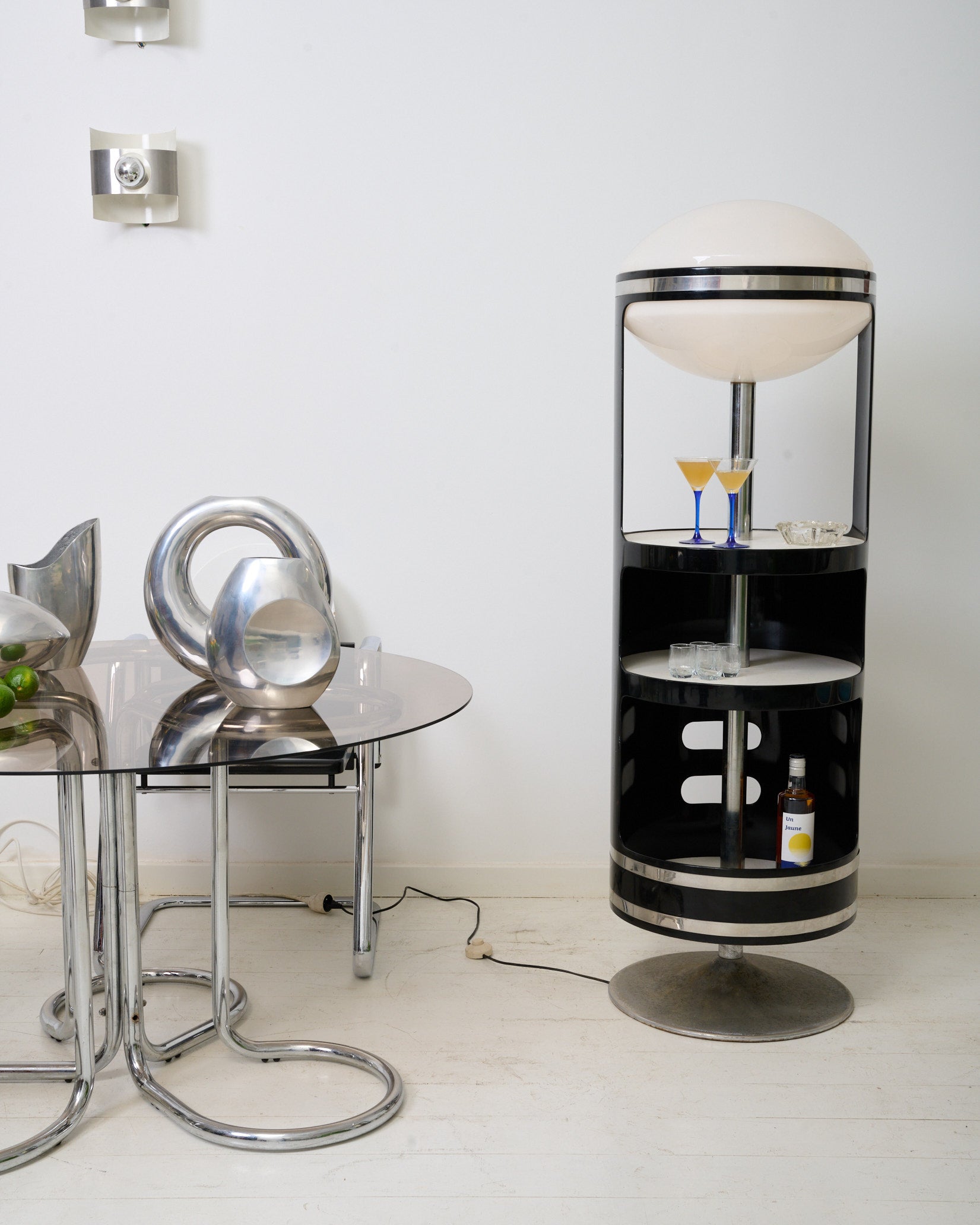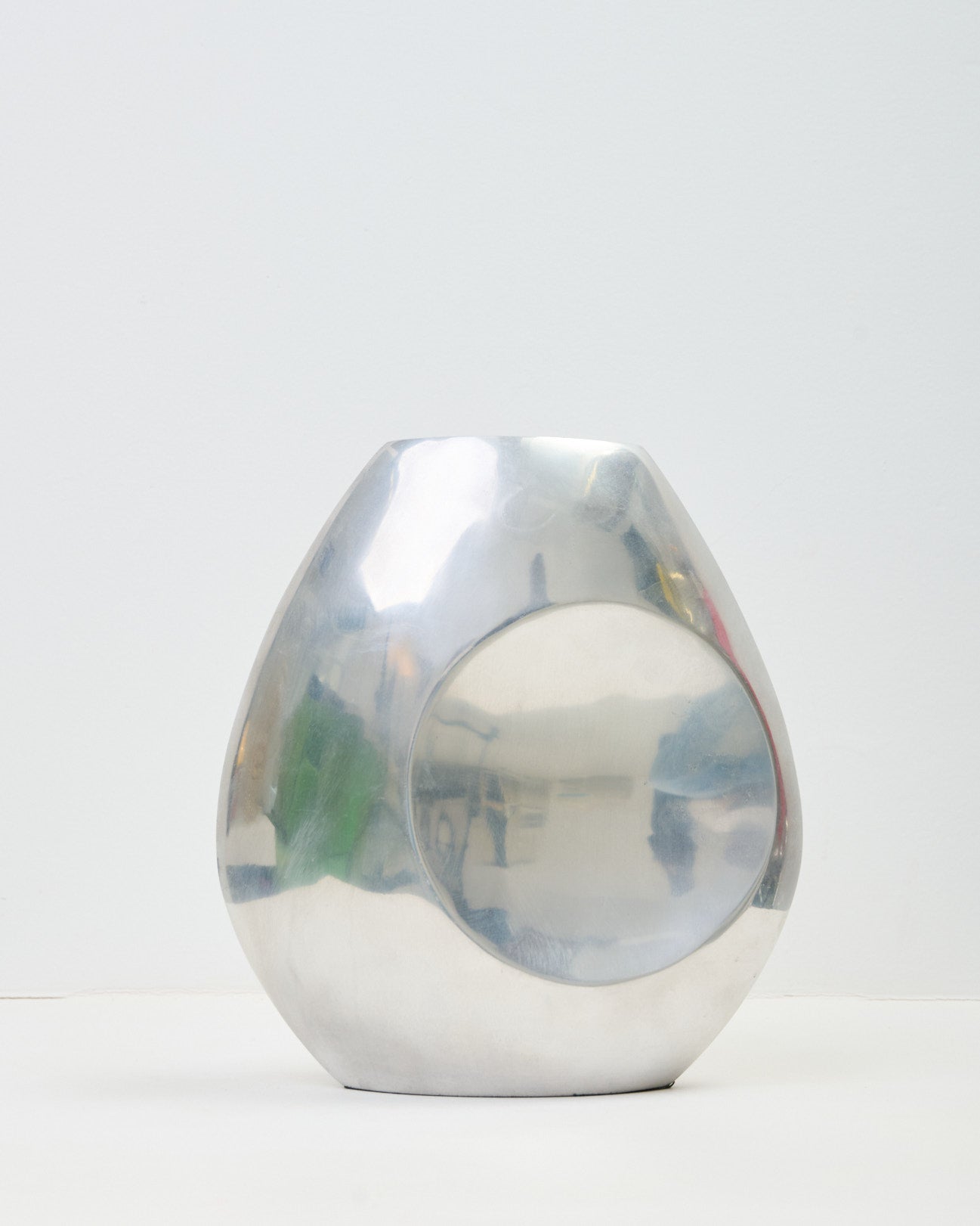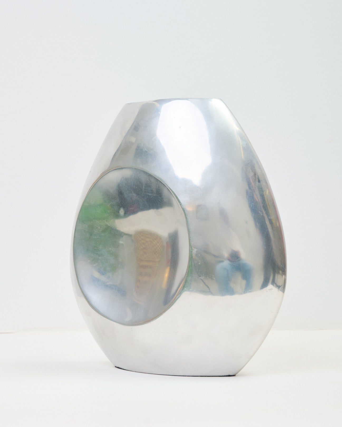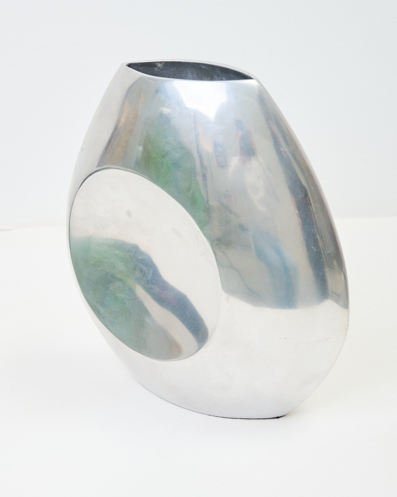 Vase space age de forme ovale et fine avec un rond plat sur chaque face. Des années 1970-1980. Très bel état.