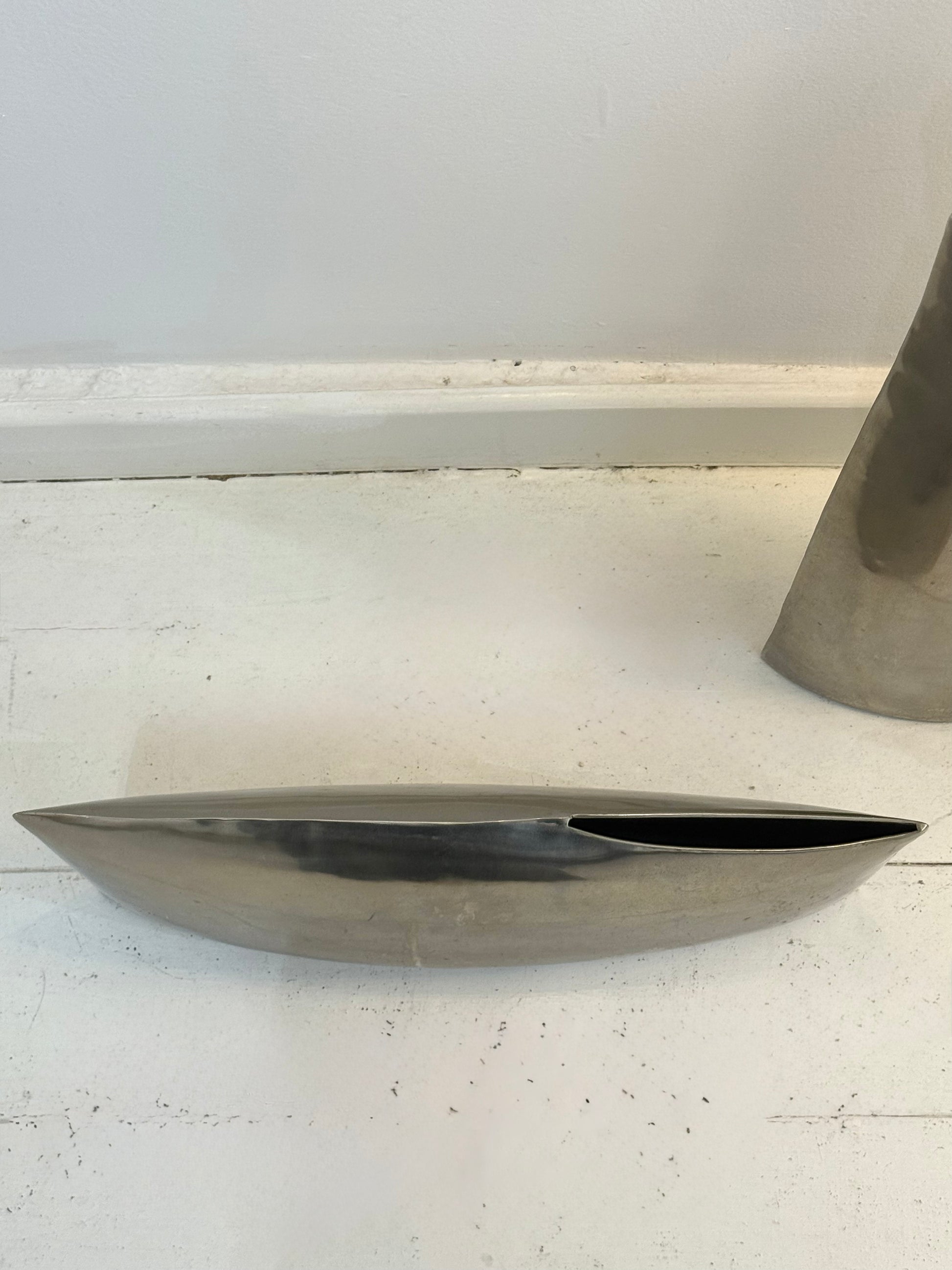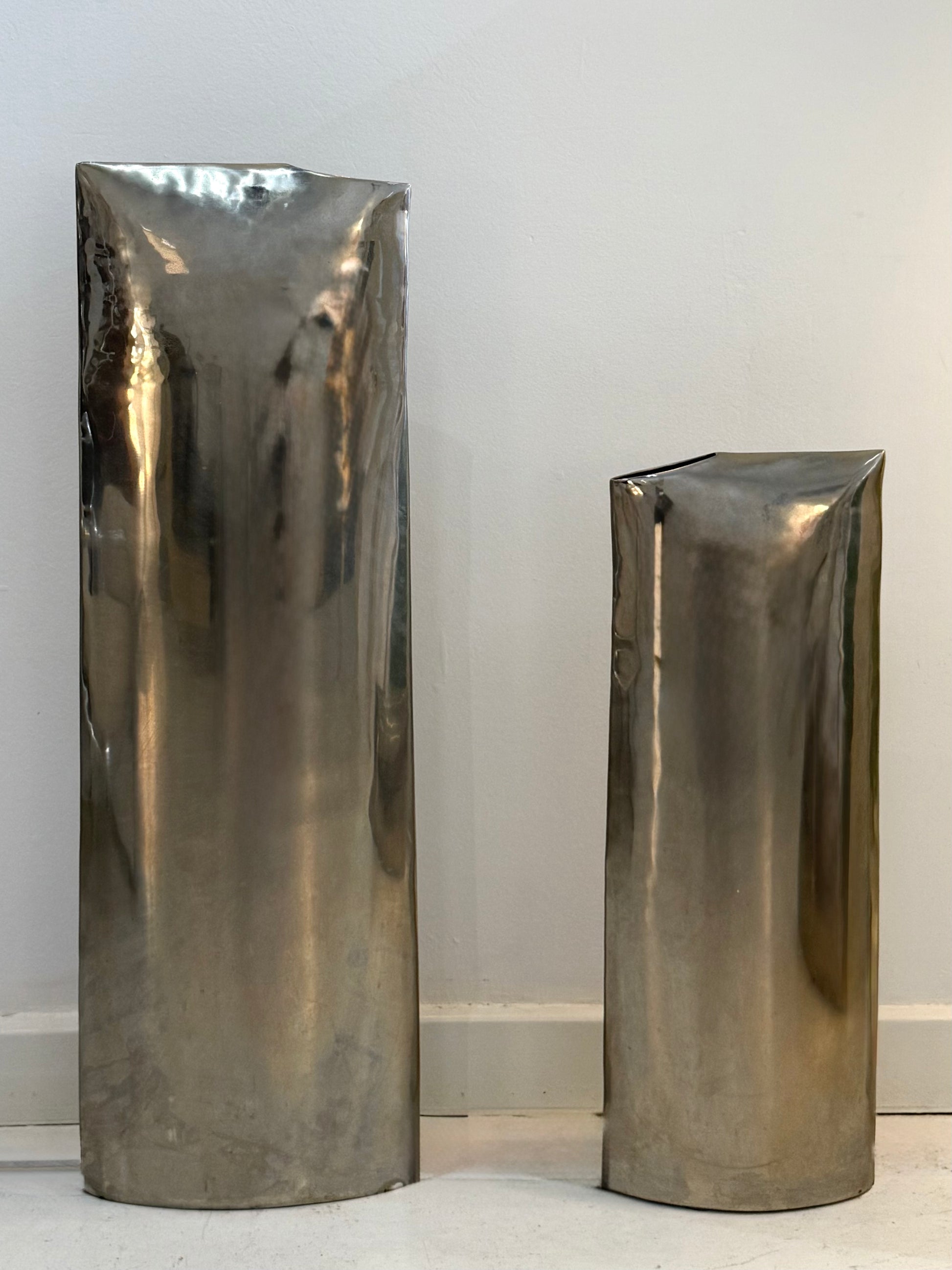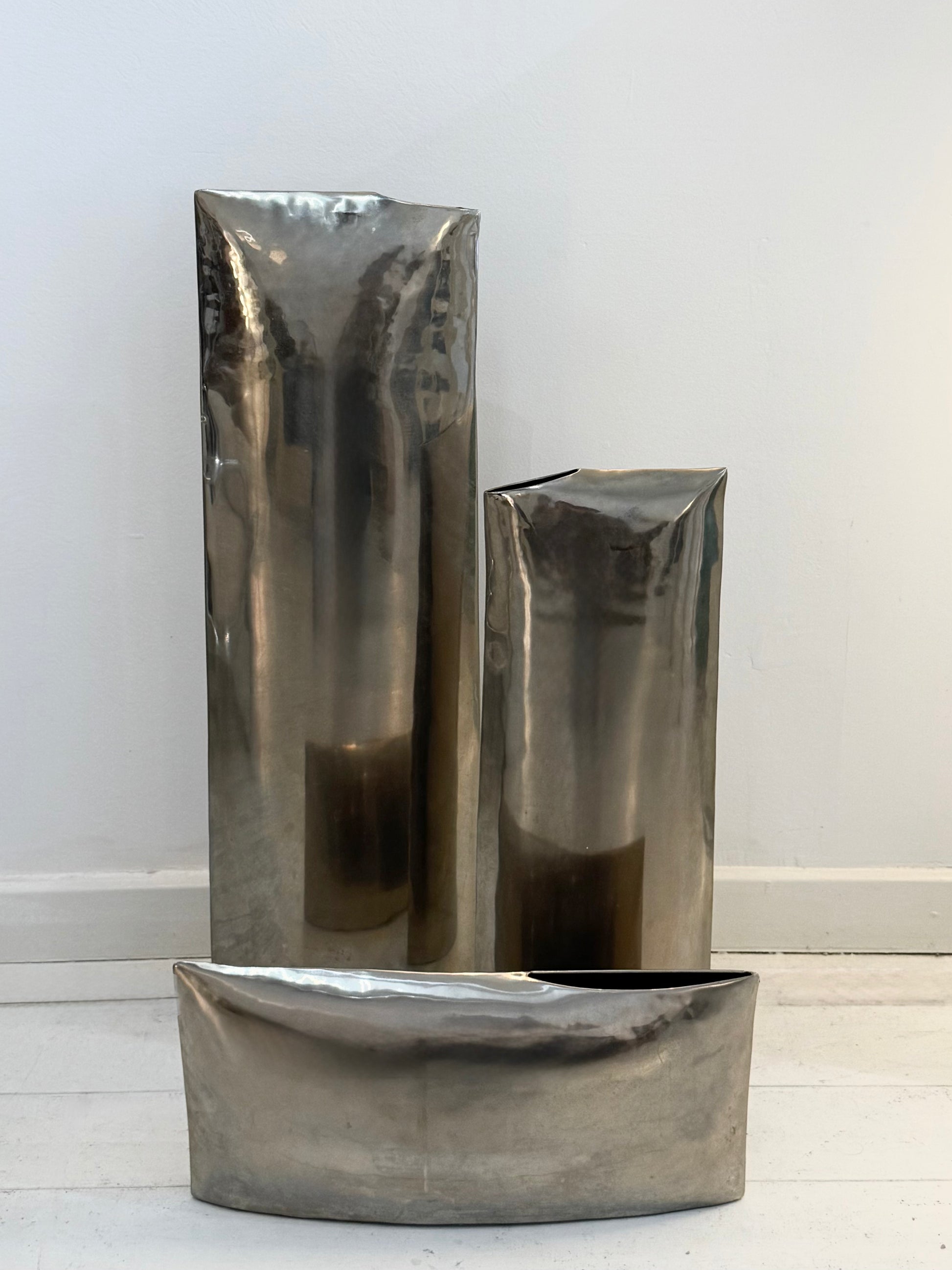Trio de très grands vases en fonte d'aluminium des années 80. Space age. Très bel état.