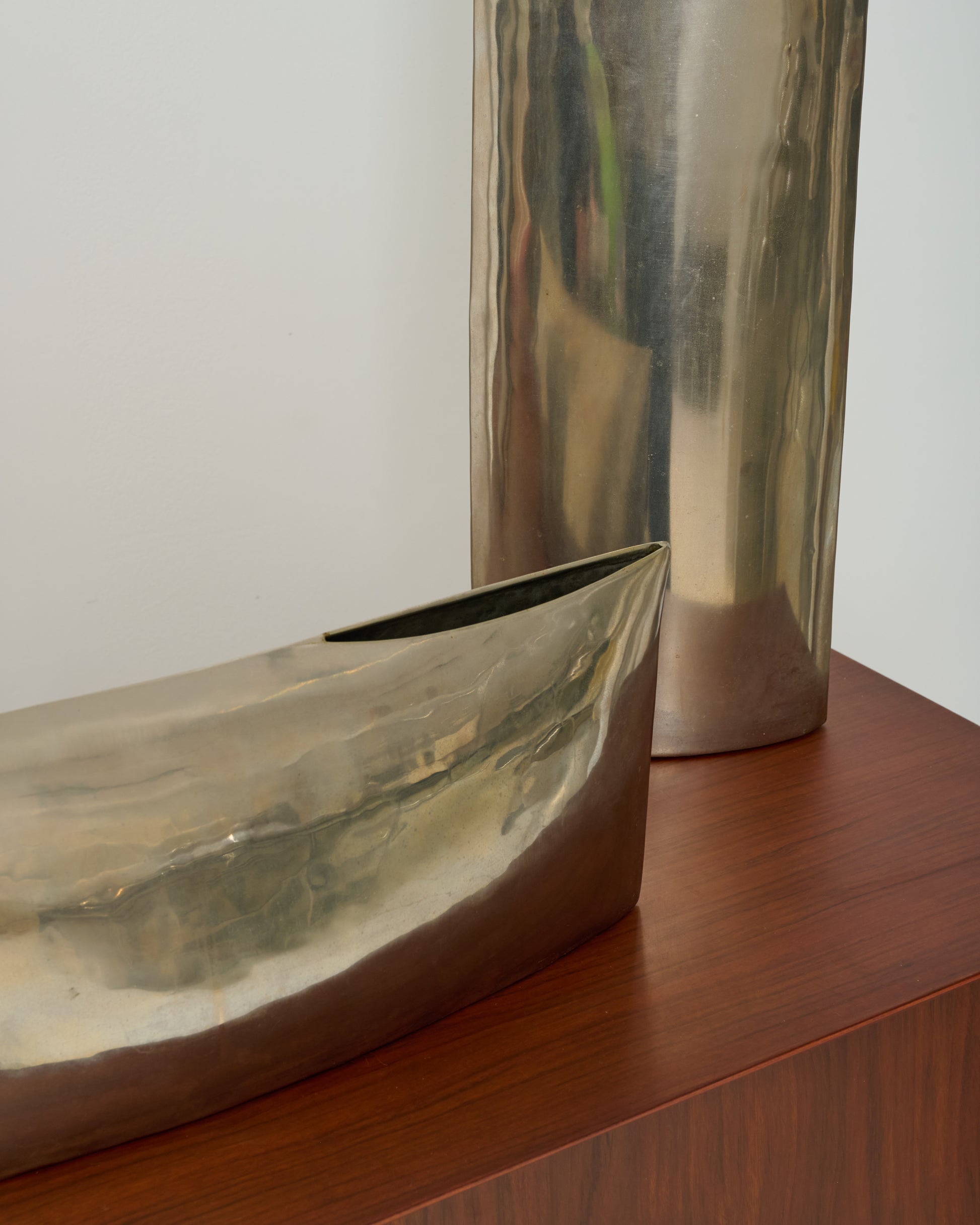 Trio de très grands vases en fonte d'aluminium des années 80. Space age. Ne peuvent contenir d'eau. Très bel état.